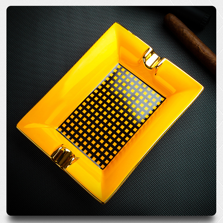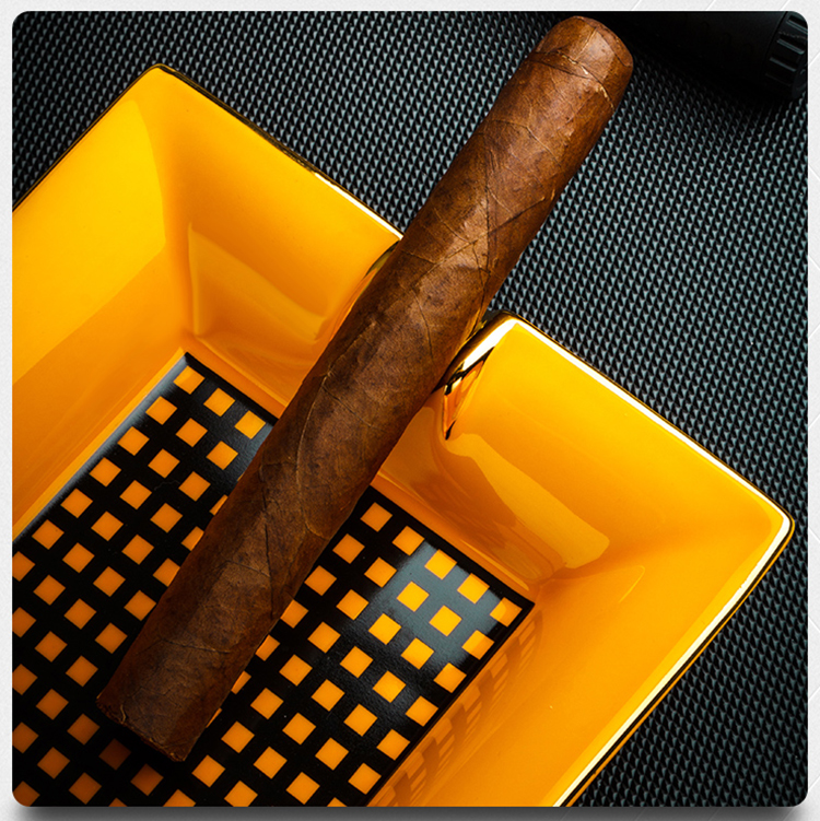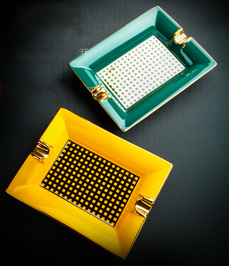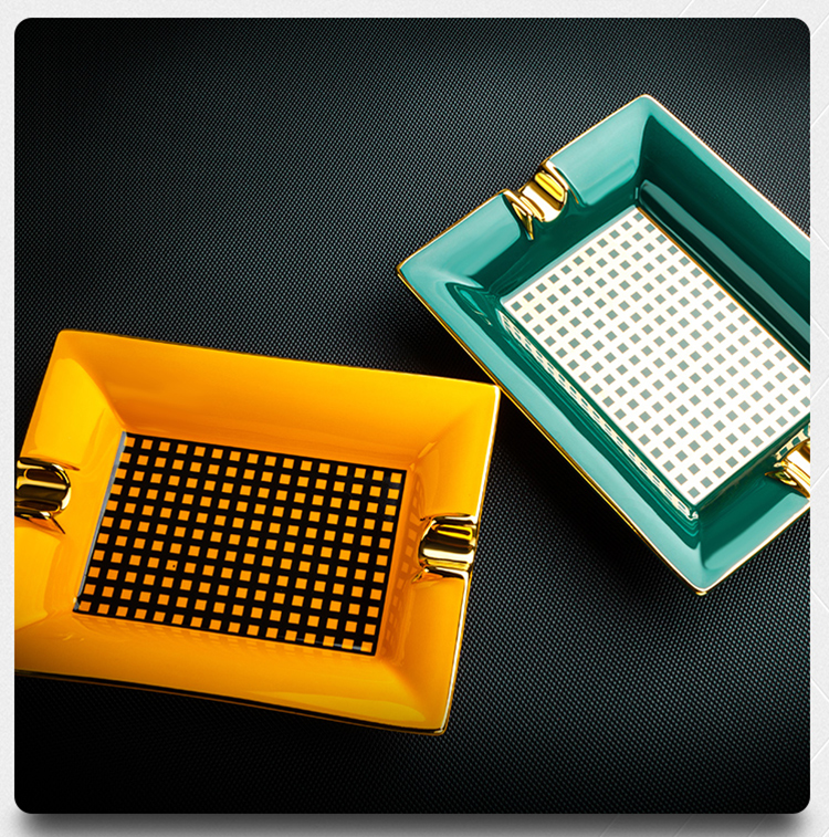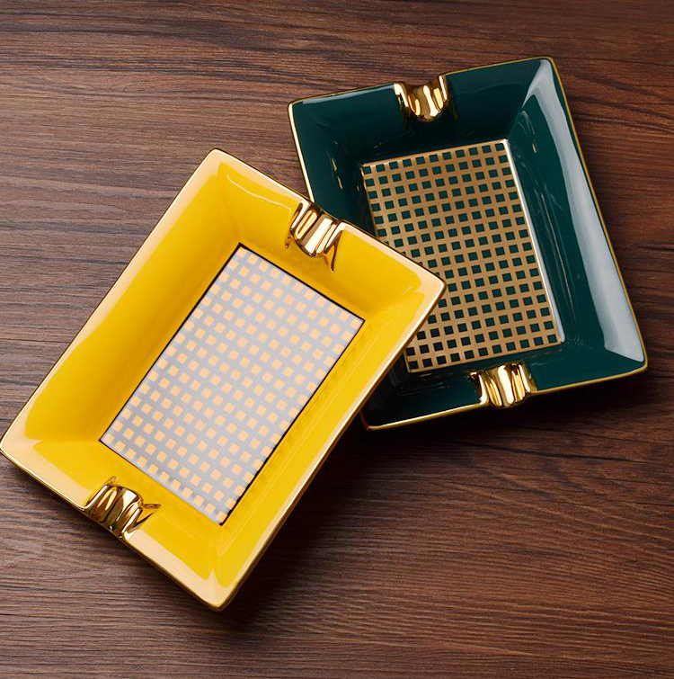 ✨Gạt Tàn Xì Ga 2 Điếu YJA-20023 Chất Liệu Gốm Sứ Họa Tiết Kẻ Caro Độc Đáo