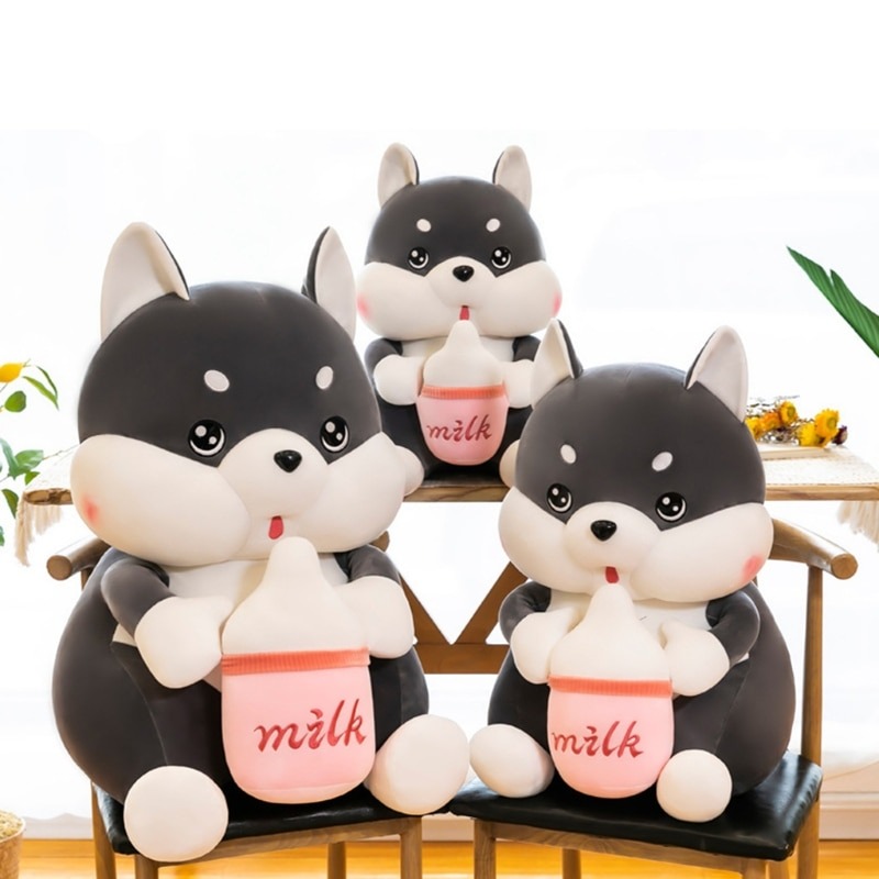 Gấu bông chó Husky ôm bình sữa siêu dễ thương – Quà tặng thú nhồi bông chó má phệ bú bình – Size từ 40 cm đến 80 cm – Gối ôm chó Husky milk cho