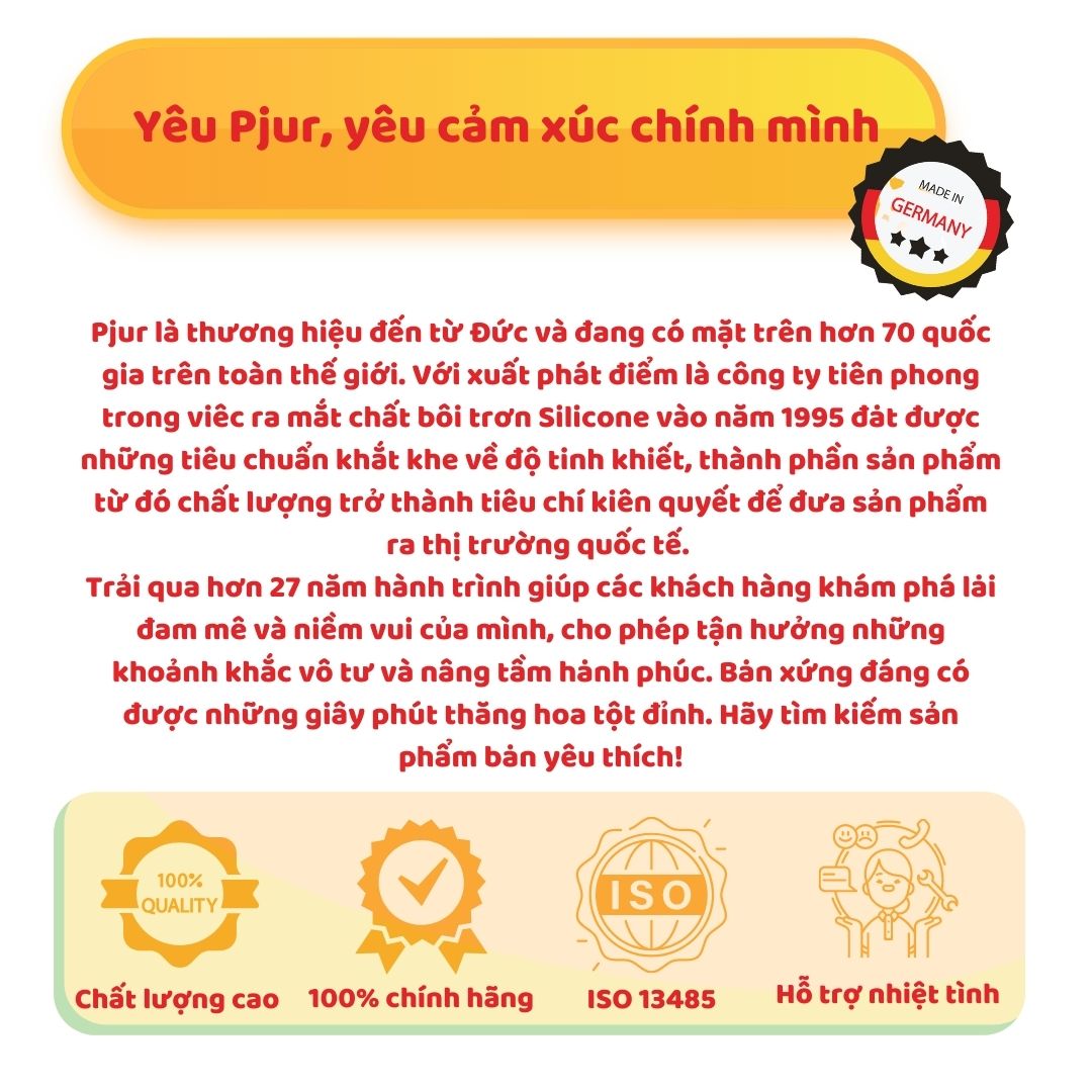 Pjur là nhãn hàng của Đức dẫn đầu về việc cung cấp các sản phẩm thân mật cao cấp cho cả nam và nữ. Với bề dày thương hiệu trải qua hơn 27 năm thành công, tất cả các sản phẩm đều được kiểm nghiệm da liễu và đáp ứng các yêu cầu nghiêm ngặt do các tổ chức quốc tế như FDA của Hoa Kỳ, TGA của Úc và Liên minh Châu Âu đặt ra.