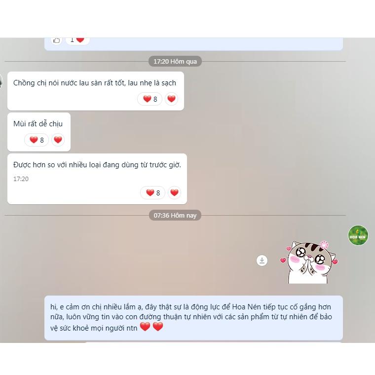 - Hạn sử dụng: 36 tháng SẢN PHẨM THUẦN CHAY MỚI - DÀNH CHO MỌI NHÀ Hoa Nén ra mắt các sản phẩm mới theo chuẩn Vegan: Gel_lau_sàn_thảo mộc_tự_nhiên - chiết xuất từ các thành phần thiên nhiên như nước cốt bồ hòn, tinh dầu sả, quế,tràm gió, chiết xuất lá ổi,... với khả năng làm sạch, diệt khuẩn , khử mùi ưu việt. ỨNG DỤNG CỦA GEL LAU SÀN THẢO MỘC TỰ NHIÊN: Làm sạch sàn nhà, sạch khuẩn và khử mùi. Dùng được cho sàn gỗ và các bề mặt tủ, bàn ghế, cửa kính và các vật dụng trong gia đình; Tạo không gian tinh sạch, xua đuổi muỗi và các loại côn trùng; Hương thơm tinh dầu tự nhiên, thăng hoa cuộc sống, an toàn với sức khỏe và thân thiện với môi trường. Không giống như những dòng sản phẩm thông thường khác trên thị trường, Gel lau sàn thảo mộc tự nhiên của Hoa Nén không chỉ đáp ứng nhu cầu của người tiêu dùng, mà còn thân thiện với môi trường, không thử nghiệm trên động vật. Gel lau sàn tự nhiên chính là tham gia vào công cuộc sống xanh và bảo vệ sức khỏe của gia đình chúng ta mỗi ngày. Vậy nên, hãy lựa chọn những sản phẩm thuần chay cùng Hoa Nén bạn nhé!!! CÁCH SỬ DỤNG: Ấn vòi 4-5 lần vào 3-4 lít nước sạch rồi khuấy đều để lau sàn nhà hoặc phun hỗn hợp đã pha lên cửa,tường và lau sạch. GHI CHÚ: Sử dụng sản phẩm trong vòng 6 tháng kể từ khi mở nắp CAM KẾT: