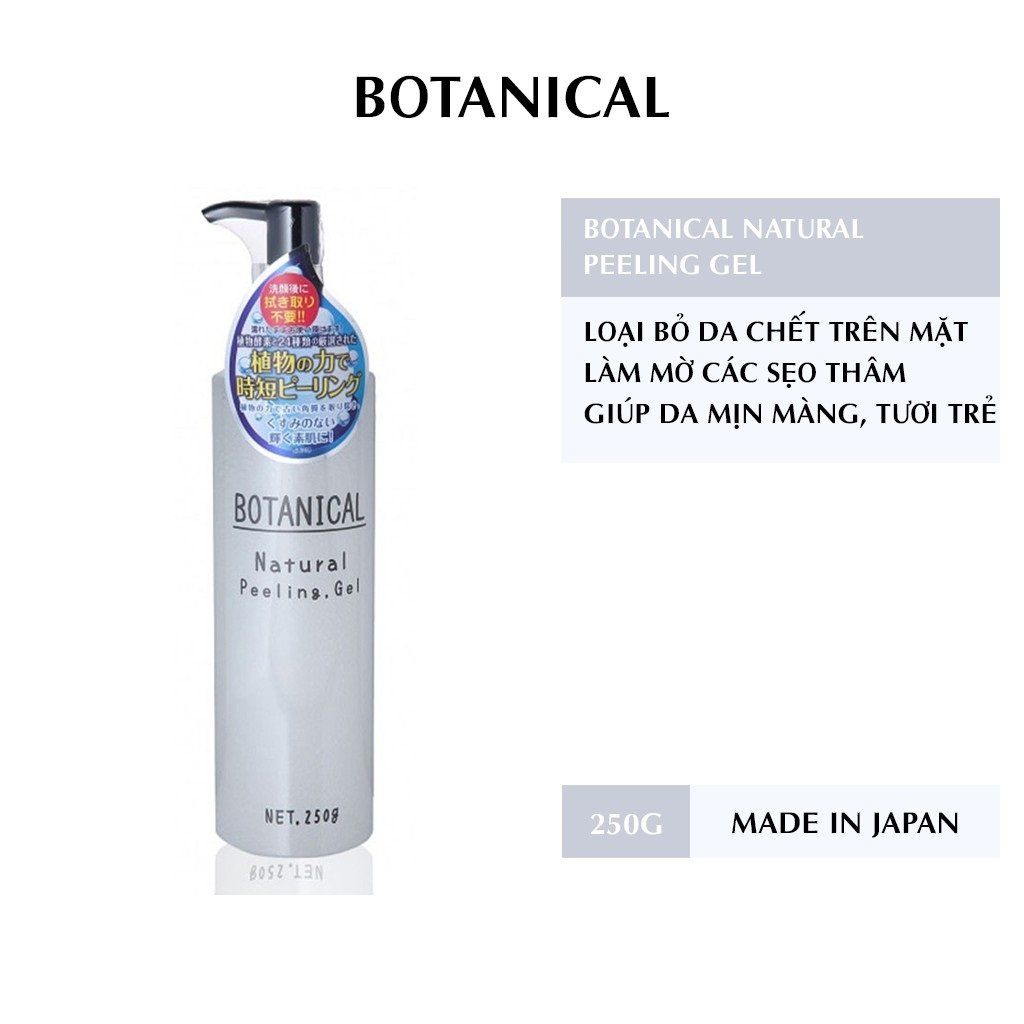 Công dụng Gel loại bỏ da chết Botanical giúp loại bỏ tế bào da chết, mụn đầu đen và bã nhờn trên da, giúp làm thoáng lỗ chân lông, cung cấp vitamin và dưỡng chất, làm làn da thêm sáng khỏe nhờ các chất chống oxy hóa. HDSD: Rửa mặt sạch, dùng khăn thấm khô. Lấy 1 lượng gel vừa đủ thoa đều lên mặt. Massage nhẹ nhàng 2-3 phút theo chiều xoắn ốc để loại bỏ tế bào chết. Cuối cùng, rửa mặt lại với nước ấm và thấm khô với khăn bông. Lưu ý: Tránh tiếp xúc trực tiếp với mắt, ngưng sử dụng khi có dấu hiệu kích ứng.