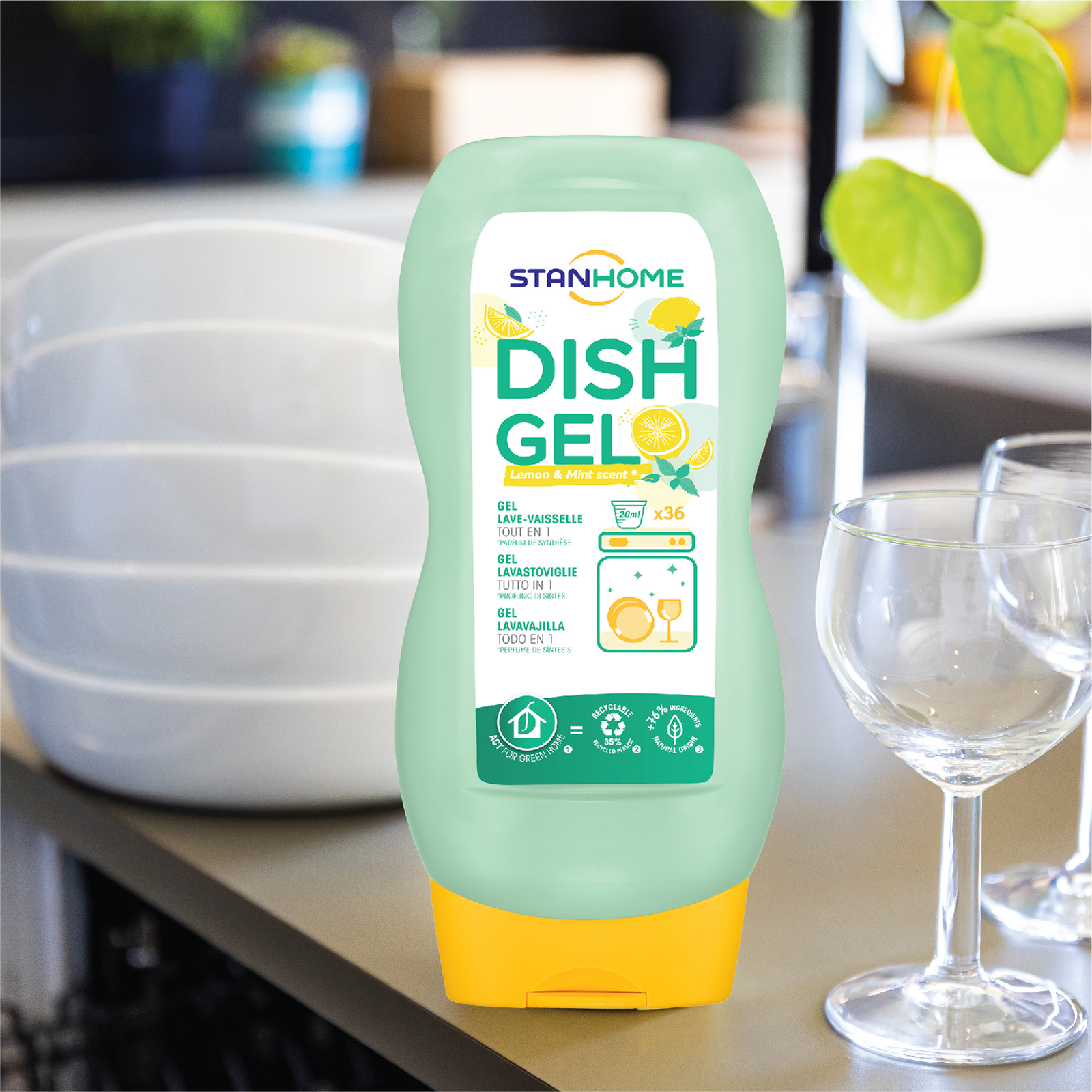 DISH GEL LEMON MINT SCENT Gel rửa bát chuyên dụng cho máy rửa bát hương Chanh Bạc Hà All in One Mới Xuất xứ: Pháp Sản xuất tại: Châu Âu Dung tích: 720ml Công dụng: