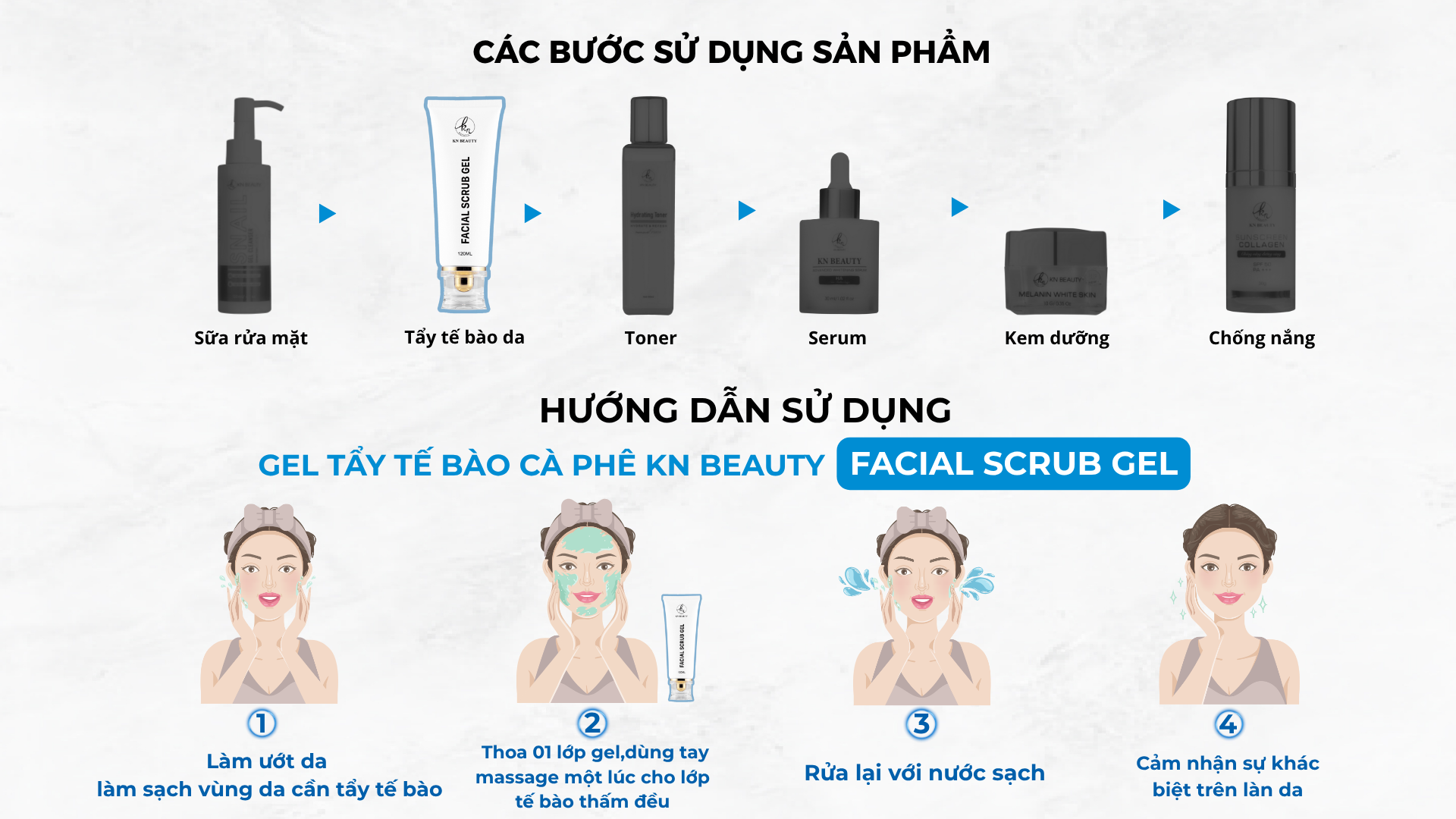 Mua tại TiktokGel Tẩy Tế Bào Chết Tinh Chất Cà Phê KN Beauty Facial Scrub Gel 120 ml CÔNG DỤNGGel Tẩy Tế Bào Cafe của KN Beauty là sự lựa chọn hỗ trợ da bạn trở nên sạch mịn và sáng hơn.