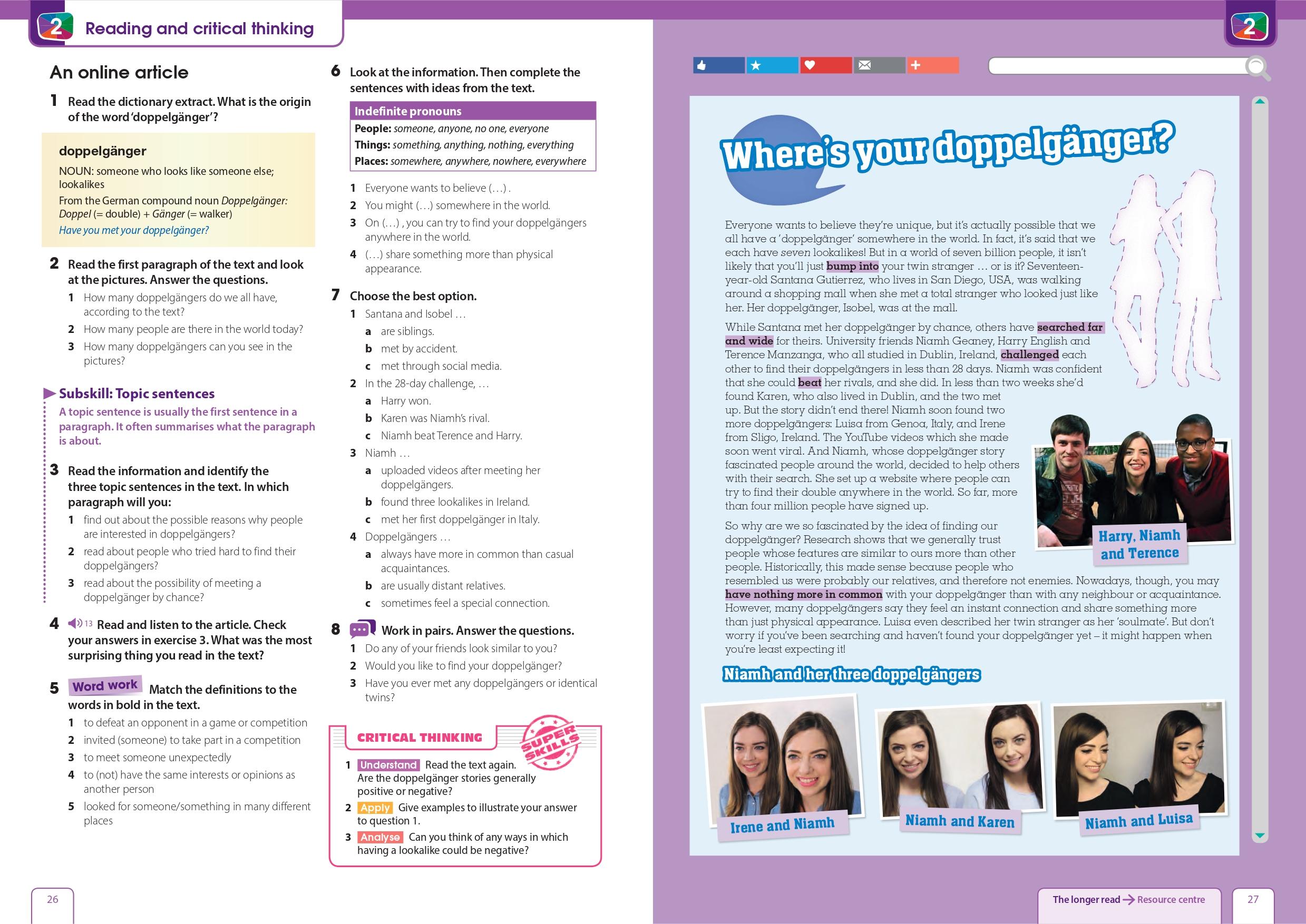 Get Involved! provides authentic contexts and empowers students to talk about real-life issues with confidence through the Collaborative Projects that feature in every unit of the Student's Book.