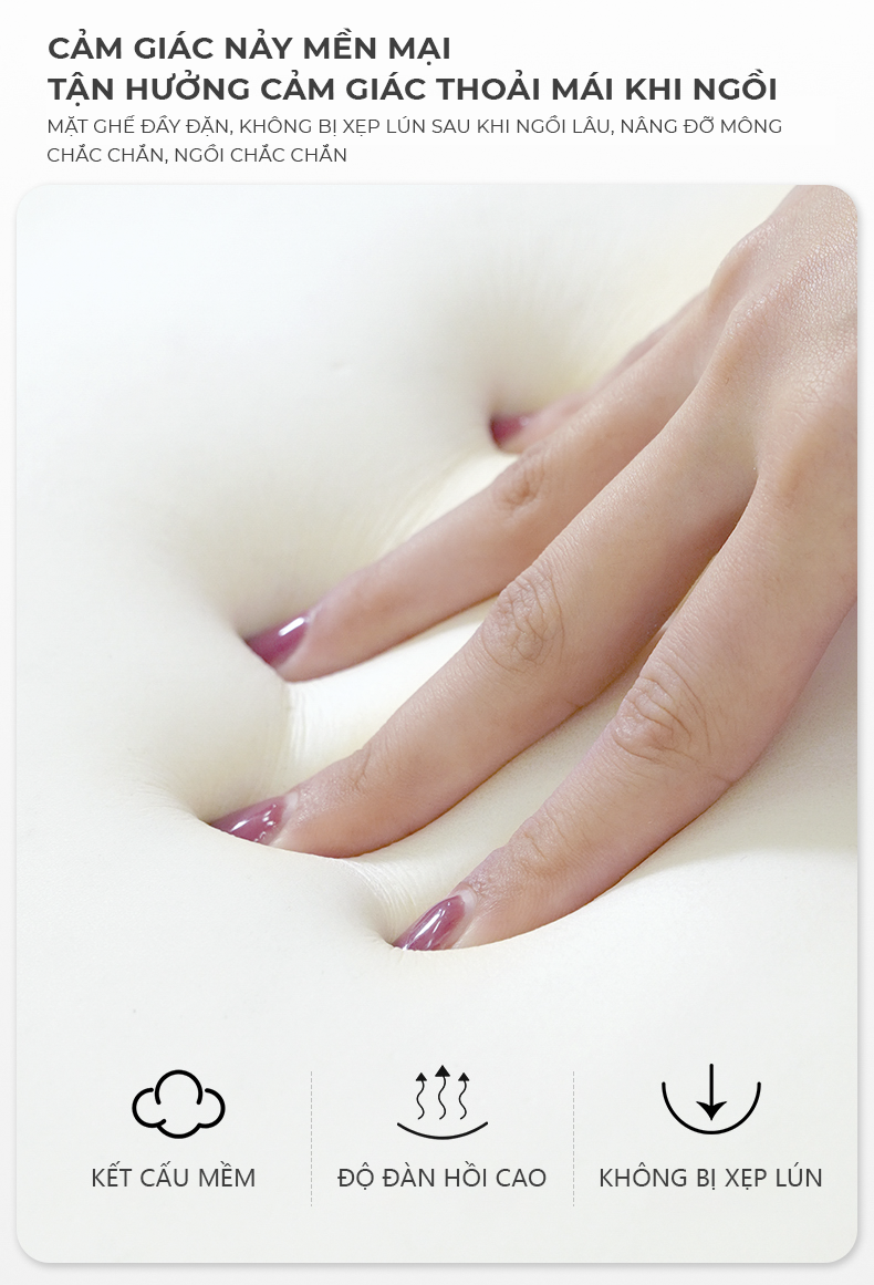 - Kích thước: Dài 46 Rộng 45cm Cao 40cm - Chất liệu: Khung gỗ Plywood phủ sơn mờ an toàn, không độc hại, thân thiện với môi trường - Mặt đệm mút phủ vải dệt bền đẹp, êm ái. - Đặc điểm nổi bật: Cấu trúc vững chắc, khả năng chịu lực cao, mang đến sự an tâm trong từng chuyển động. Tựa lưng có tỉ lệ hợp lý, nâng đỡ cột sống hiệu quả, giảm cảm giác mỏi khi ngồi lâu. Thiết kế gọn nhẹ, dễ dàng di chuyển, phù hợp với các không gian nhỏ hoặc bố trí linh hoạt theo nhu cầu.