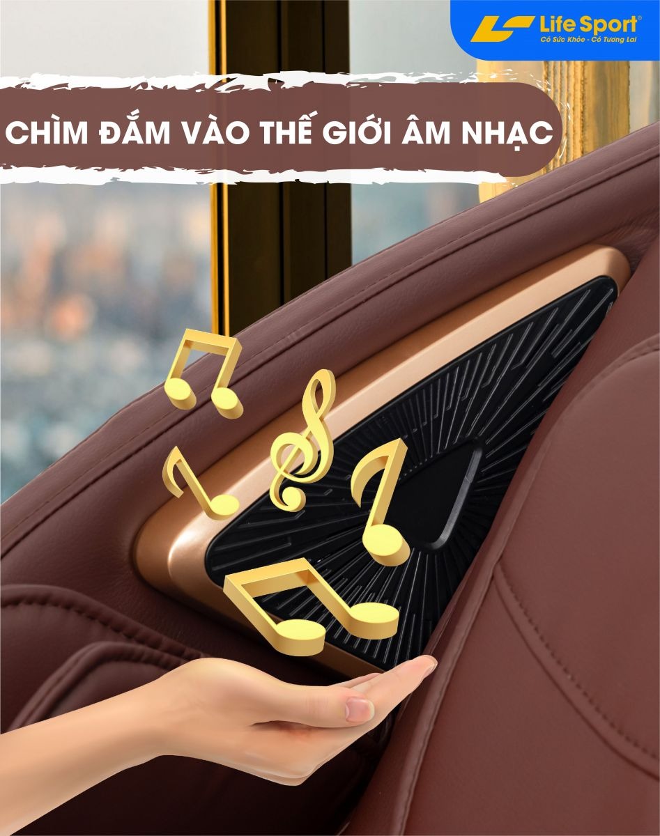 Còn gì tuyệt vời hơn khi vừa thư giãn, vừa được thoải mái tận hưởng những bản nhạc du dương. Với khả năng kết nối Bluetooth trên ghế massage toàn thân LifeSport LS-911, người dùng chỉ cần một chiếc điện thoại thông minh là có thể nghe nhạc tùy thích với loa Hifi chất lượng cao.