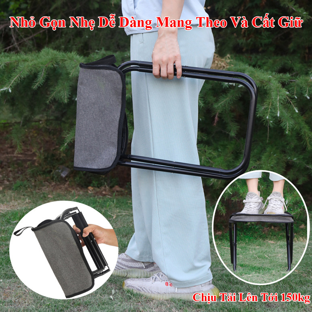 Ghế Mini Gấp Gọn Liền Túi Đựng KUNBE Phù Hợp Du Lịch Dã Ngoại Cắm Trại Câu Cá Đợi Chờ Tàu Xe
