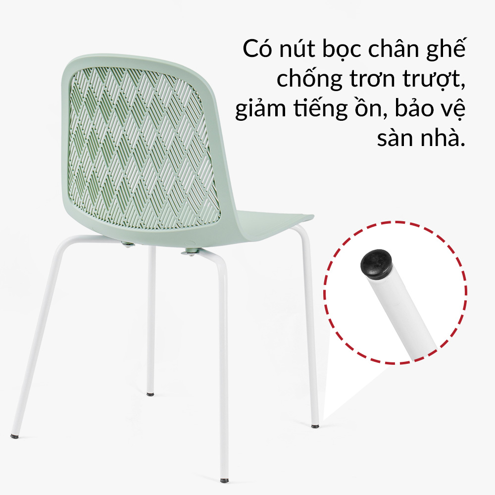Chân ghế làm bằng chất liệu kim loại sơn tĩnh điện chắc chắn, mang tới vẻ đẹp sang trọng và thanh thoát cho sản phẩm