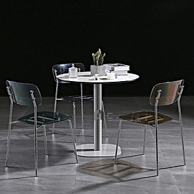 ✨Ghế nhựa PC trong suốt ICE-PC Nội thất Capta Ghế Cafe Fastfood nhựa trong suốt màu xám khói xếp chồng có chân thép mạ chrome bóng