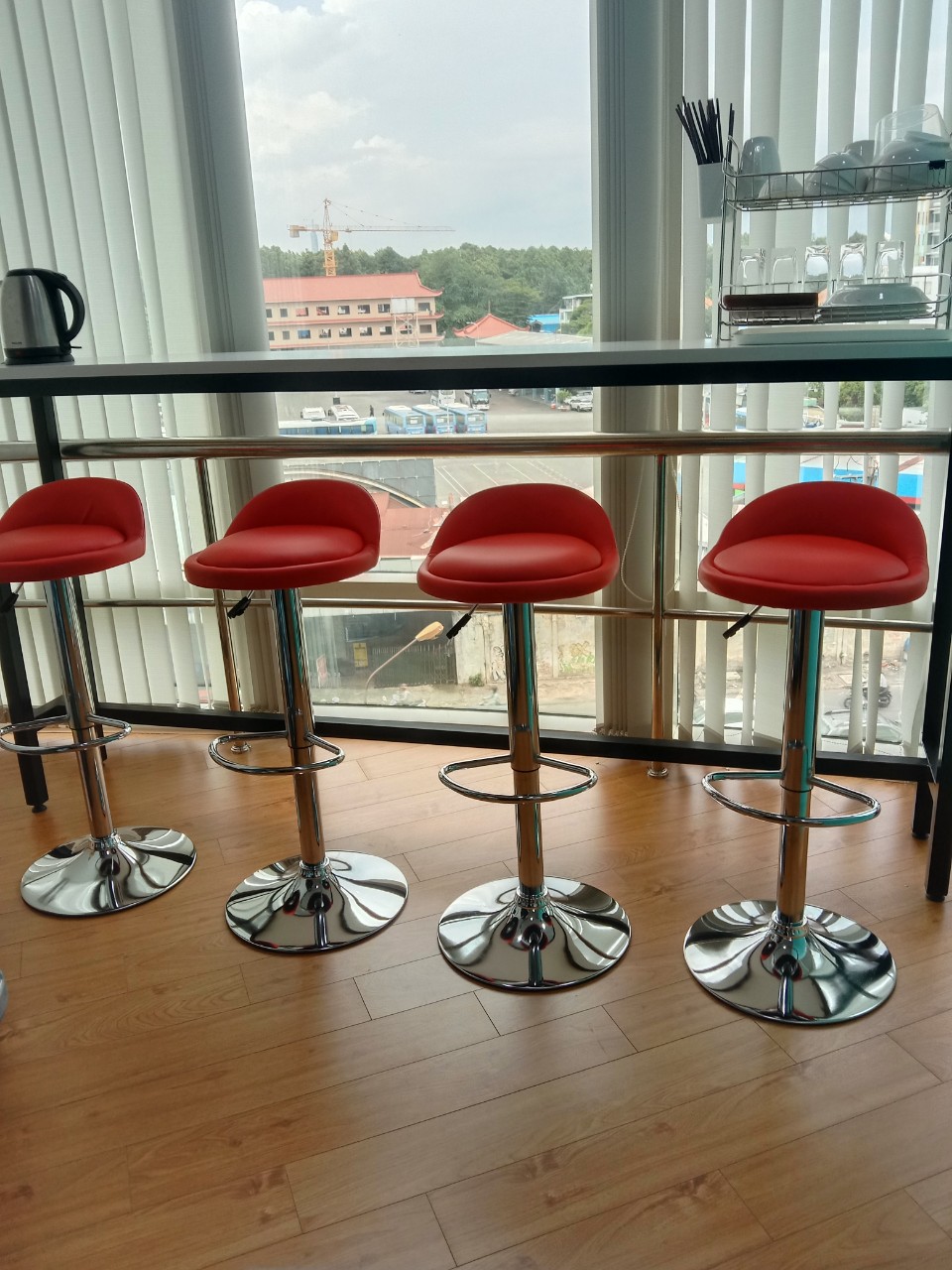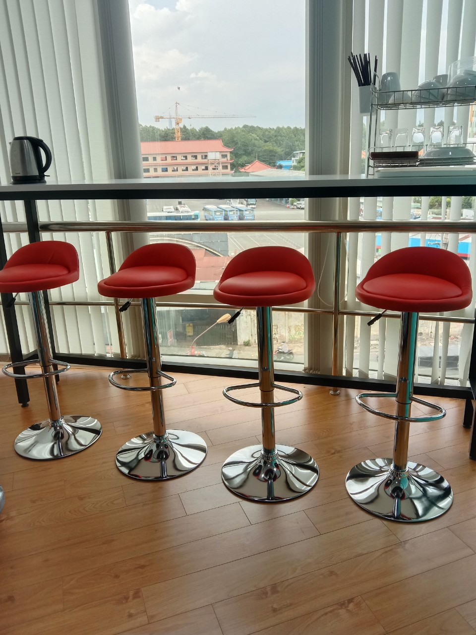 - Chất liệu: Thân ghế bọc PVC: trắng, đen, đỏ, nâu. - Chân thép mạ chrome hoặc sơn tĩnh điện màu đen. - Pen ghế cao, tùy chỉnh độ cao thấp phù hợp với chiều