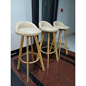 Mua tại TiktokGhế quầy bar CB2130-P Ghế đảo bếp nệm bọc PVC màu Kem xoay 360 độ lưng tựa thấp có chân sắt sơn giả gỗ