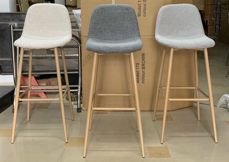 Ghế quầy bar nhập khẩu rẻ đẹp Chất liệu: chân sơn tĩnh điện màu đen, nệm bọc vải nhung Màu sắc: Xám, xanh, nâu, đỏ Ghế bar nệm vải nhung có lưng tựa sang trọng