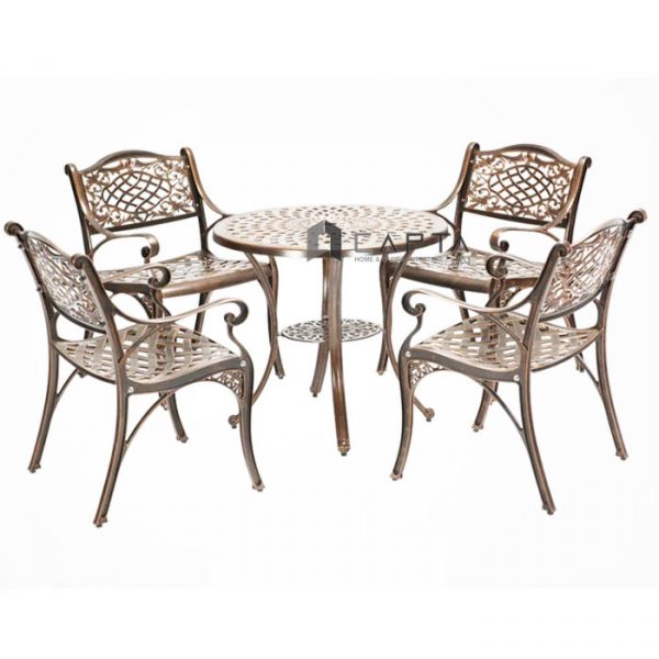 Bộ Bàn Ghế nhôm Đúc Sân Vườn Màu Nâu Ánh Đồng Nhỏ Gọn BG-012N - Vườn An Nam