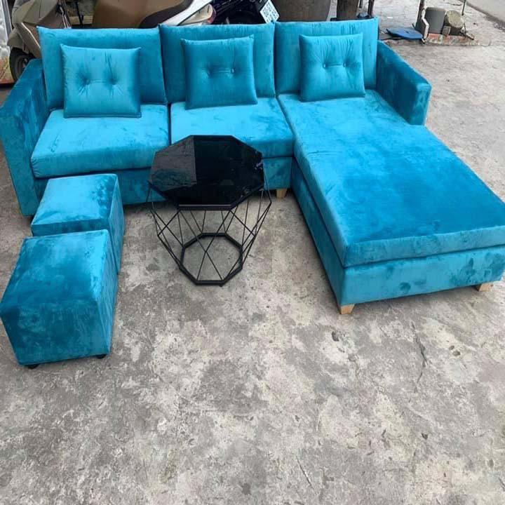 Mẫu ghế sofa bọc nhung góc chữ L hiện đại đang được bán chạy nhất hiện nay. Bên ngoài ghế sofa bọc nhung cao cấp, bề mặt nhung mềm mại.