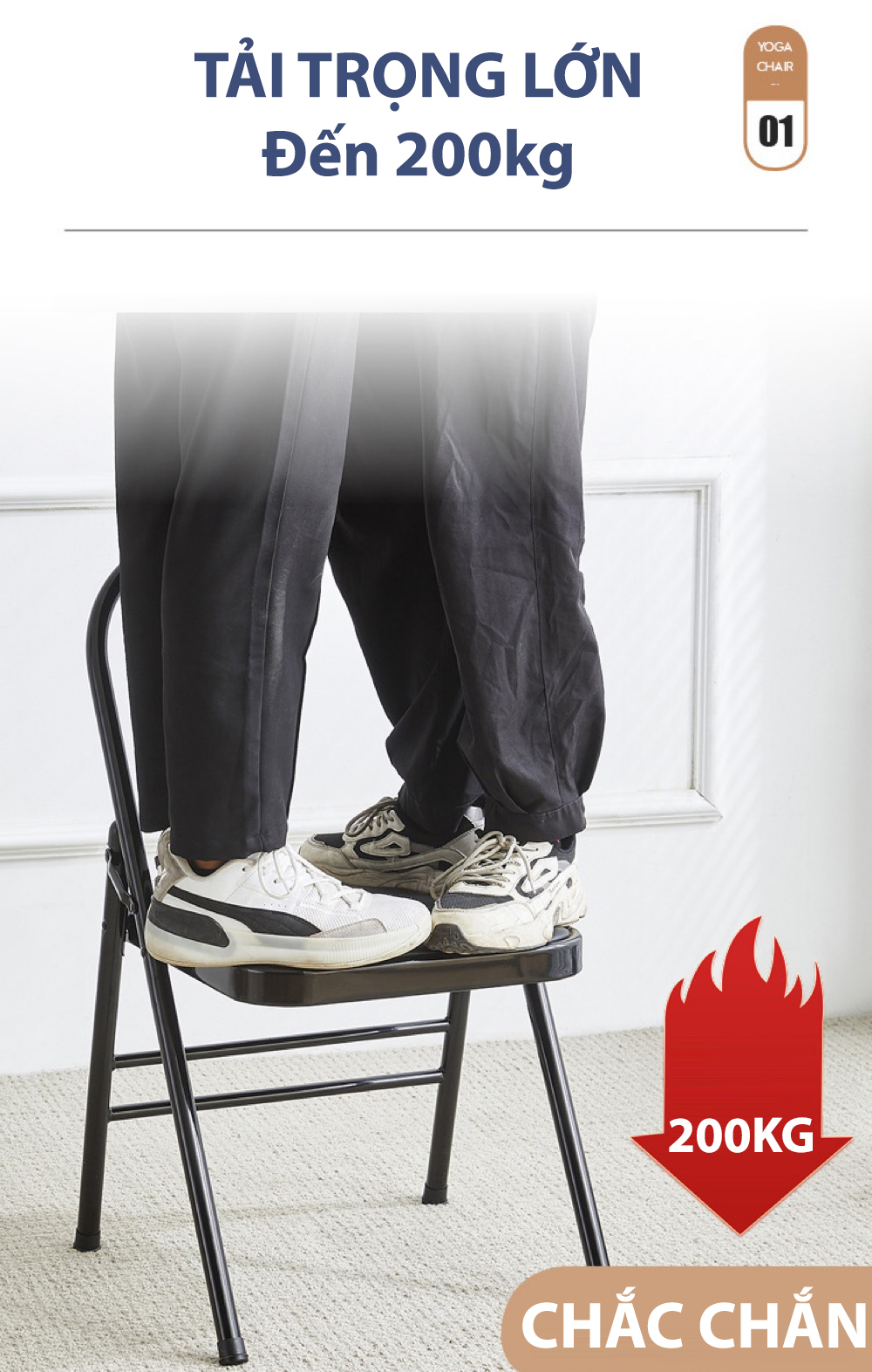 - Khung ghế Yoga Chair Basic NA được làm từ chất liệu sắt dày (khoảng 1.5ly) đảm bảo sự an toàn tuyệt đối và vững chãi hơn cho các tư thế tập luyện. Nó có thể chịu được tải trọng cơ thể lớn hoặc các tác động của lực khi di chuyển tư thế này sang tư thế khác.
