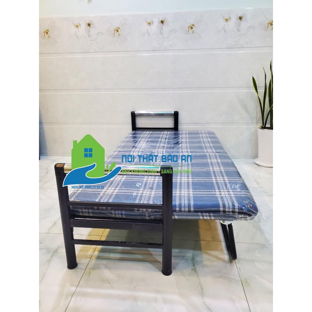 - Chính sách ưu đãi giảm giá khi mua hàng lần 2,giao hàng nhanh. Tên sản phẩm: GIƯỜNG XẾP ĐA NĂNG Thương hiệu : ĐẠI THÀNH Công Nghệ: Hàn Quốc Kiểu dáng: Kiểu giường nệm xếp gọn nâng cao đầu Trọng Lượng : 32.5 kg Tải trọng tĩnh : 150kg Kích thước sử dụng : Chiều dài 1,90m; chiều rộng 0,90m; chiều cao 0,35m Kích thước đóng gói : Chiều dài 1,04m; chiều rộng 0,90m Chất liệu nệm : Nệm cứng không sụt lún dày 8cm. Ưu điểm: Gấp gọn khi không sử dụng, bánh xe di chuyển, nâng cao đầu phù hợp cho người già, nệm cứng không sụt lún, thiết kế độc quyền Bảo hành khung thép 12 tháng. Hỗ trợ giao hàng lắp đặt tận nơi tại TPHCM. Sản phẩm này là tài sản cá nhân được bán bởi Nhà Bán Hàng Cá Nhân và không thuộc đối tượng phải chịu thuế GTGT. Do đó hoá đơn VAT không được cung cấp trong trường hợp này.