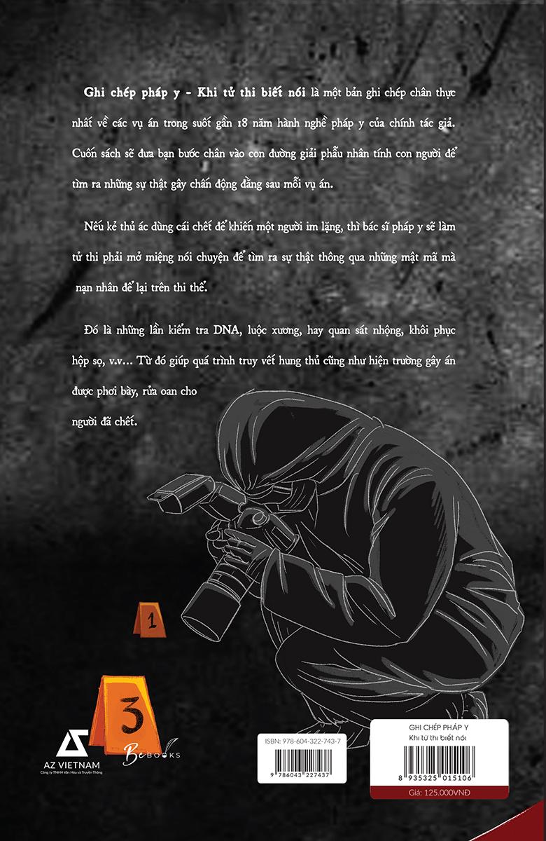 Cuốn sách sẽ dẫn bạn bước vào hiện trường những vụ án ghê rợn, dưới góc nhìn chuyên môn của một bác sĩ pháp y: luộc xương để đoán tuổi xác chết, xác định thời gian tử vong dựa vào vỏ nhộng trên thi thể, dùng găng tay da người để nhận dạng danh tính nạn nhân… từng bước rửa oan cho người đã khuất, phơi bày những lỗ hổng pháp luật và sự mất nhân tính của một bộ phận con người trong xã hội.