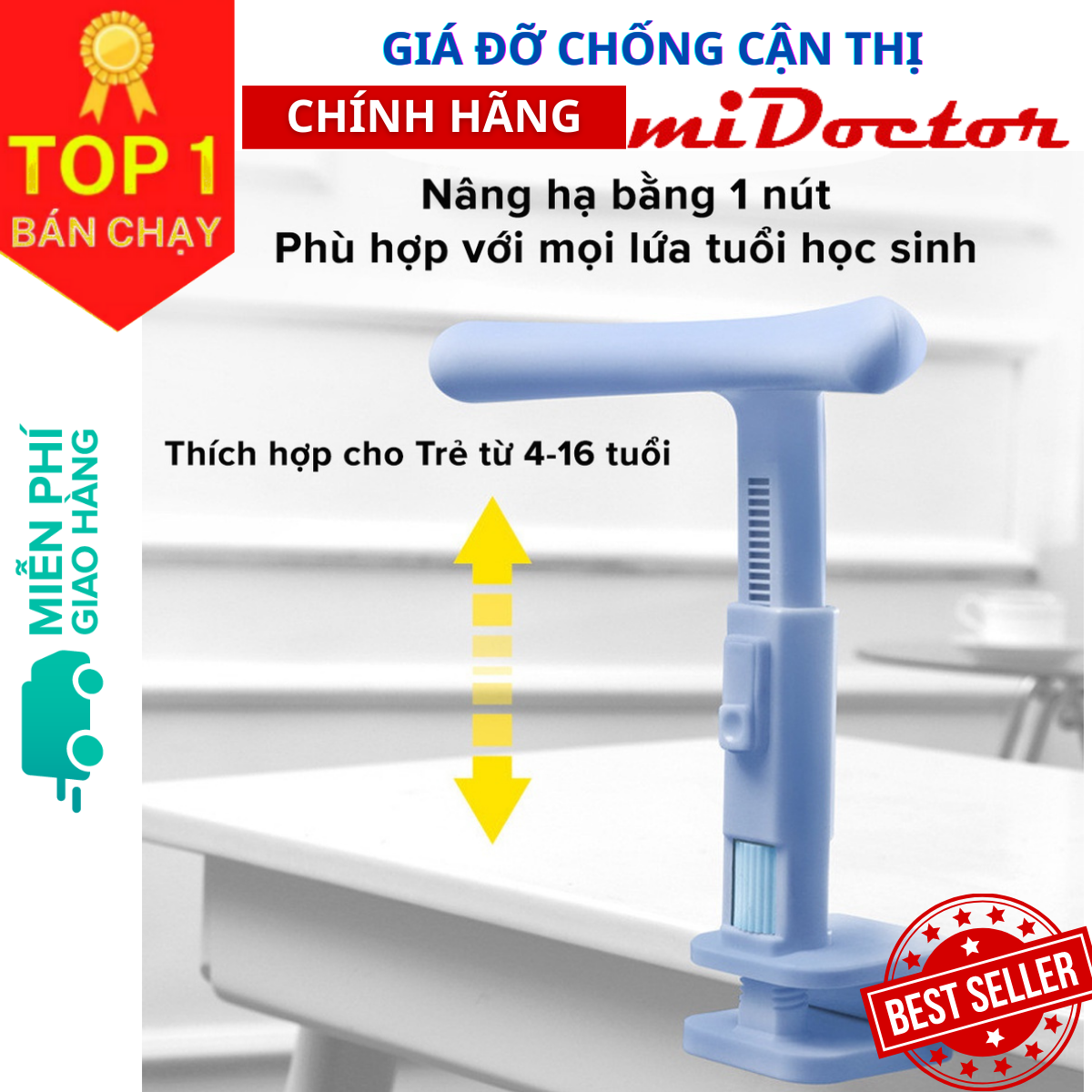 - => miDoctor đã giải quyết vấn đề nhức nhối này cho học sinh với nhiều giải pháp tối ưu. Một trong số đó là Giá Đỡ Cằm Chống Cận Thị, Chống Gù miDoctor