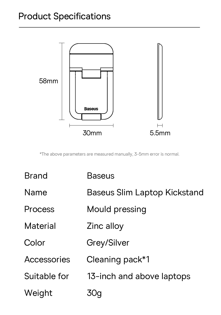 Đế Tản Nhiệt Đa Năng Siêu Nhỏ Gọn Cho Laptop/Mac-book Ba-se-us Slim Laptop Kickstand (2pcs) - Sở hữu kích thước siêu nhỏ, siêu mỏng chỉ 5mm tiết kiệm không gian, bỏ ba lô cực kỳ