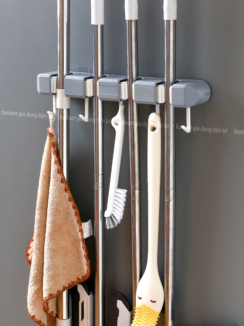 ✨Giá Đỡ Chổi 4 Lỗ Kẹp Cây Lau Nhà 5 Móc Treo Khăn Bàn Chải Cọ Tắm Đa Năng Hamart Dán Tường Siêu Dính