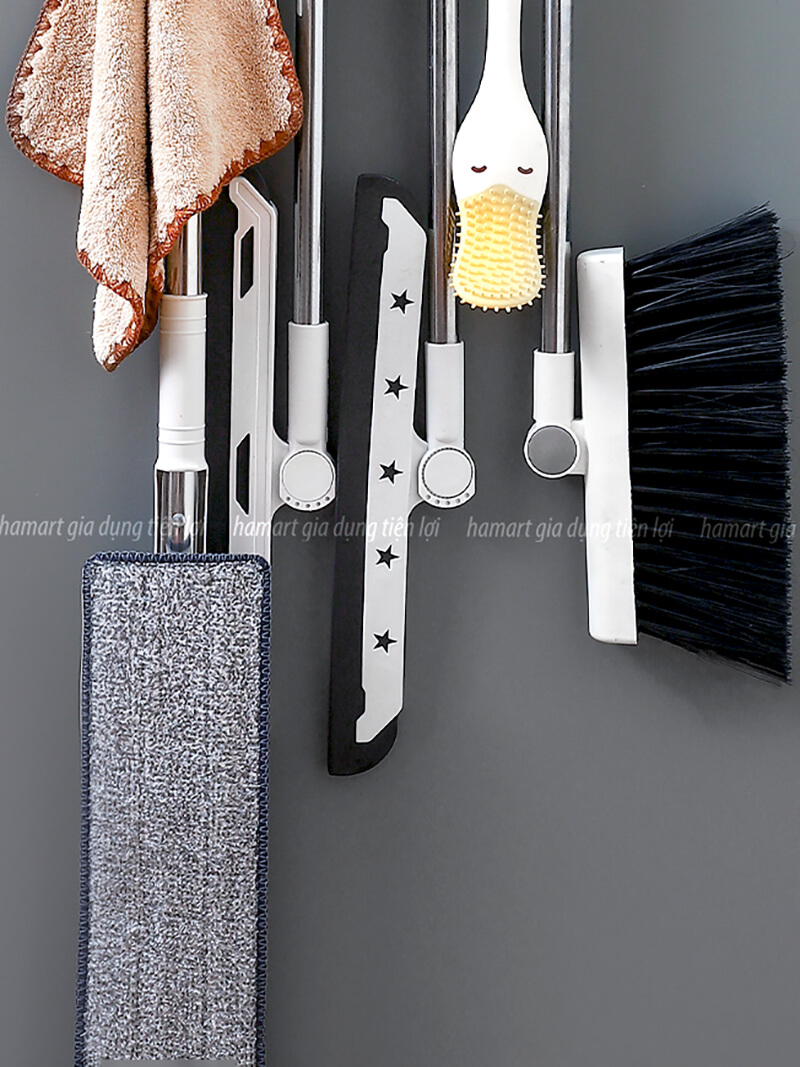 Móc treo cây lau nhà kẹp chổi lau nhà treo ô đa năng có đế keo dính tường chắc chắn