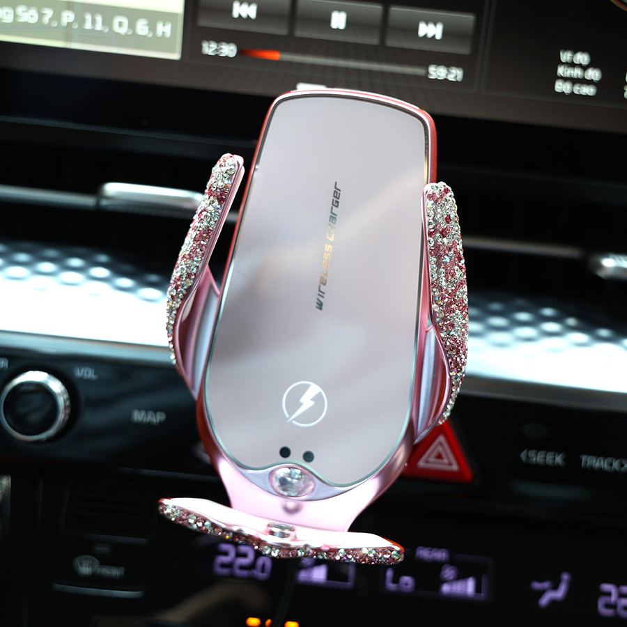 ✨Giá Đỡ Điện Thoại Đính Đá Sang Trọng Cảm Biến Hồng Ngoại Kẹp Mở Tự Động Kiêm Sạc Không Dây Trên Ô Tô CIND V56