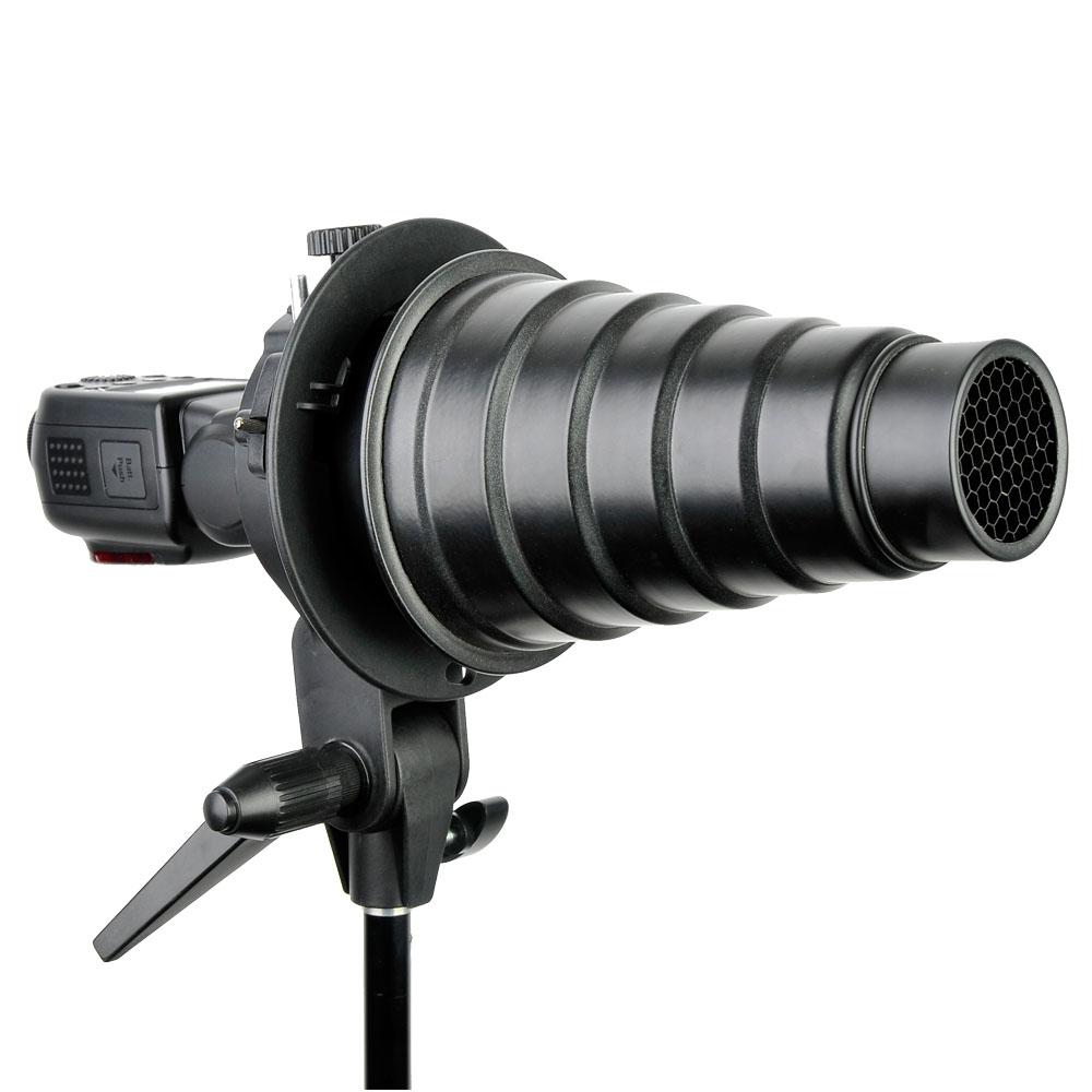 Features: Includes Conical Snoot with Honeycomb and Cylindrical Snoot with Honeycomb for GODOX WITSTRO Flash AD180/AD360/AD200. This set of snoot and grid can converge the light to a smaller lighting area, highlighting the details and