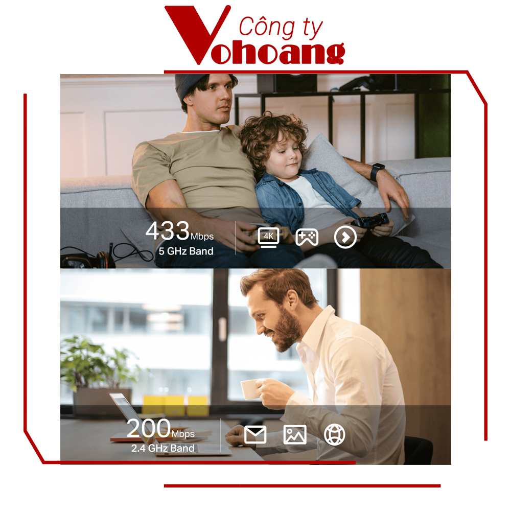 WiFi Tốc Độ Cao – Tốc độ lên tới 600Mbps với 200Mbps trên băng tần 2.4GHz và 433 Mbps trên băng tần 5GHz, nâng cấp thiết bị của bạn lên tốc độ WiFi AC cao hơn.