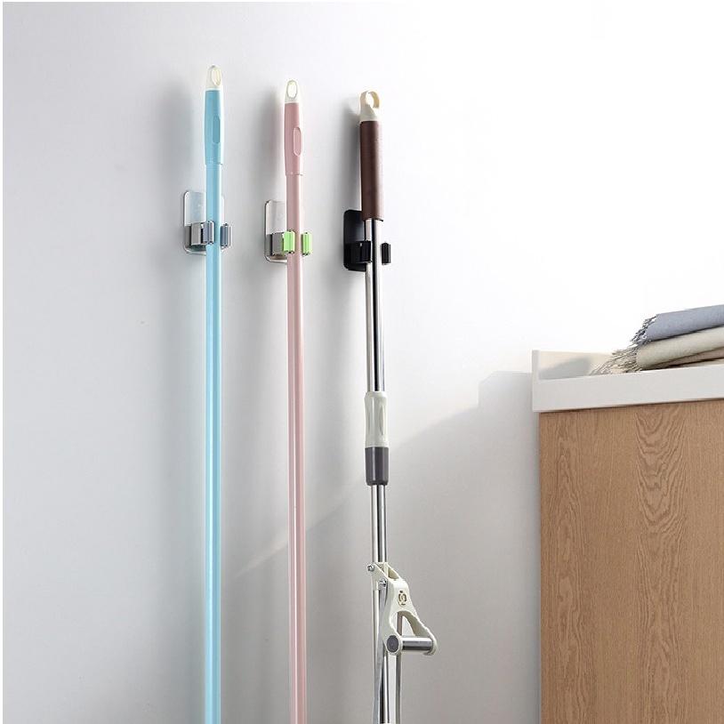 - Kẹp giữ cây lau nhà không cần phải khoan tường gắn đinh, dán móc bằng keo 2 mặt, khả năng chịu lực tốt đến 6 kg.