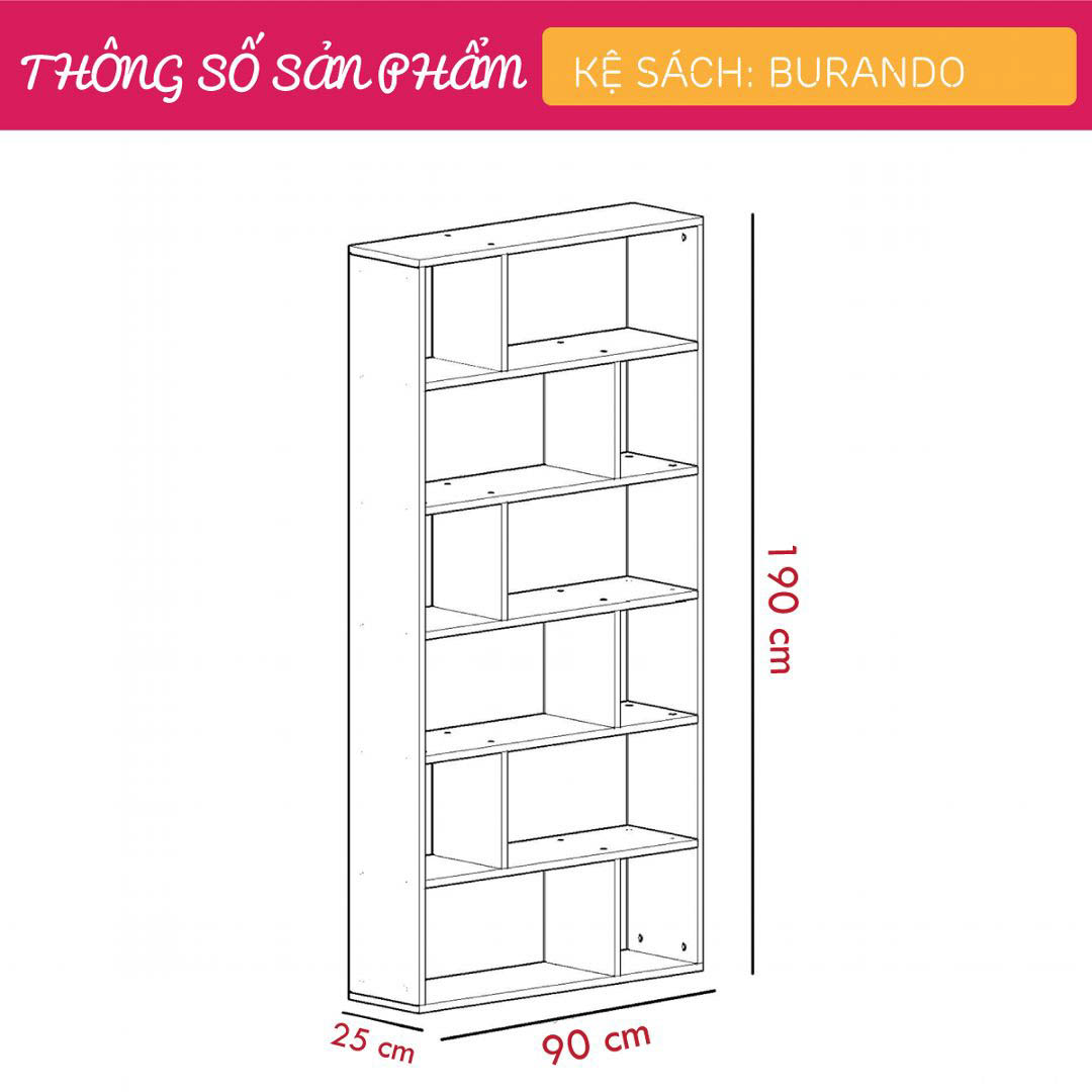 Kệ sách SMLIFE Burando được ví như một tác phẩm nghệ thuật với phong cách đơn giản sẽ giúp bạn xắp sếp những cuốn sách một cách sành điệu và độc đáo. Kệ sách Burando