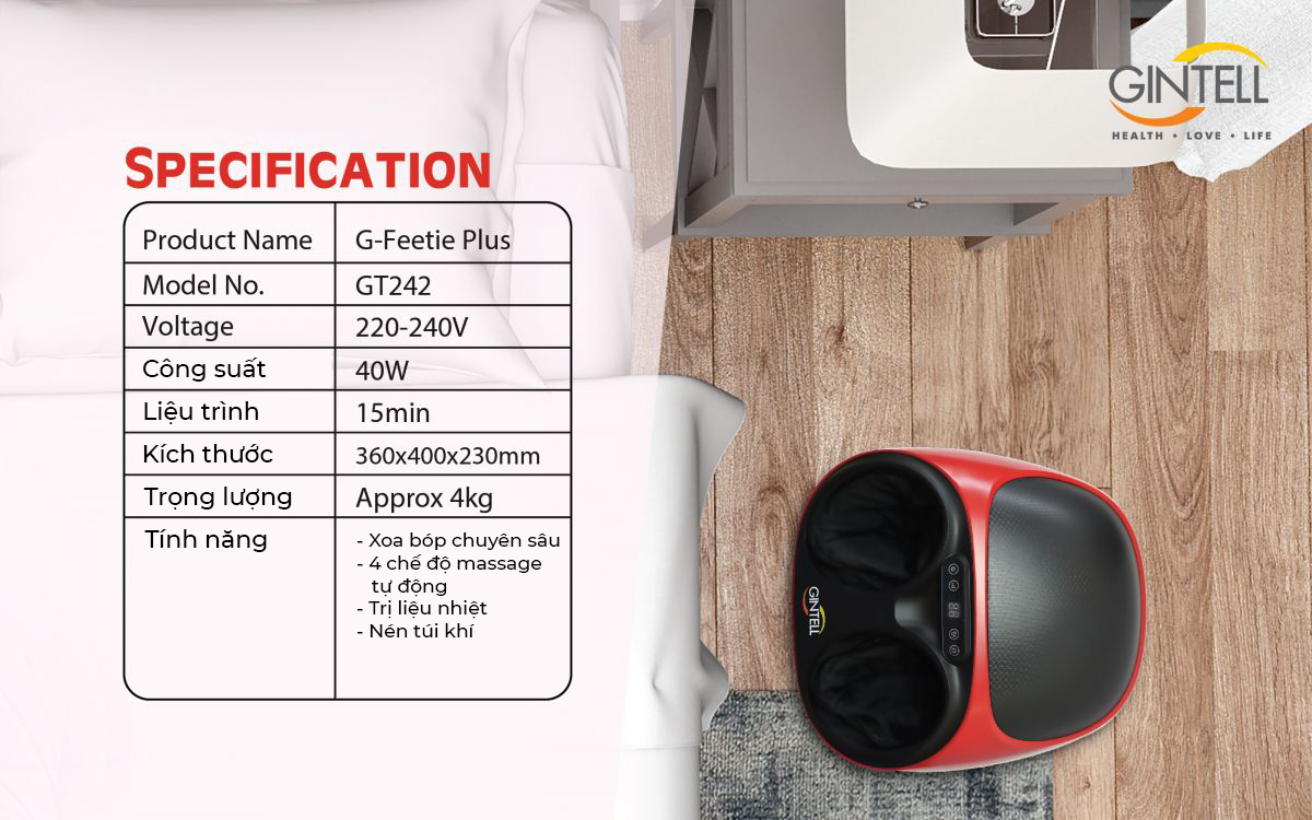MÁY MASSAGE CHÂN GINTELL G- FEETIE PLUS **ƯU ĐIỂM NỔI BẬT +Được trang bị công nghệ mới nhất: Bạn có thể thoải mái di chuyển chân sang cả hai hướng, máy sẽ