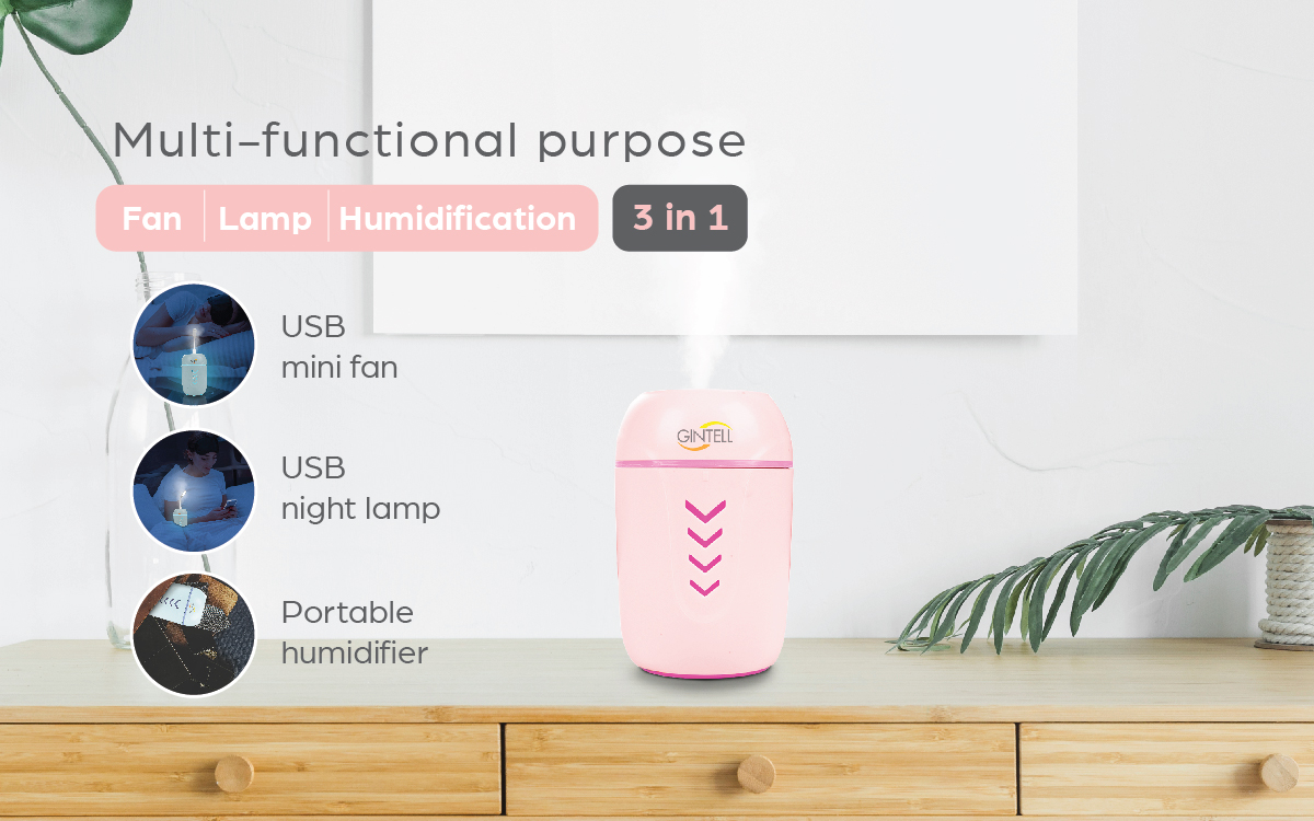 Máy tạo ẩm cá nhân cho nhân viên văn phòng, tại nhà và trong xe hơi Tạo hơi sương siêu mịn, vận hành yên tĩnh Sử dụng giắc cắm USB, dễ dàng mang theo bất