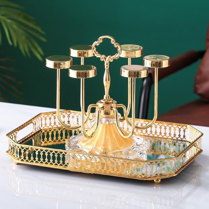 Giá úp cốc xoay , khay gương úp cốc mạ vàng đẹp sang bày bàn, trang trí Phòng khách cho mọi nhà