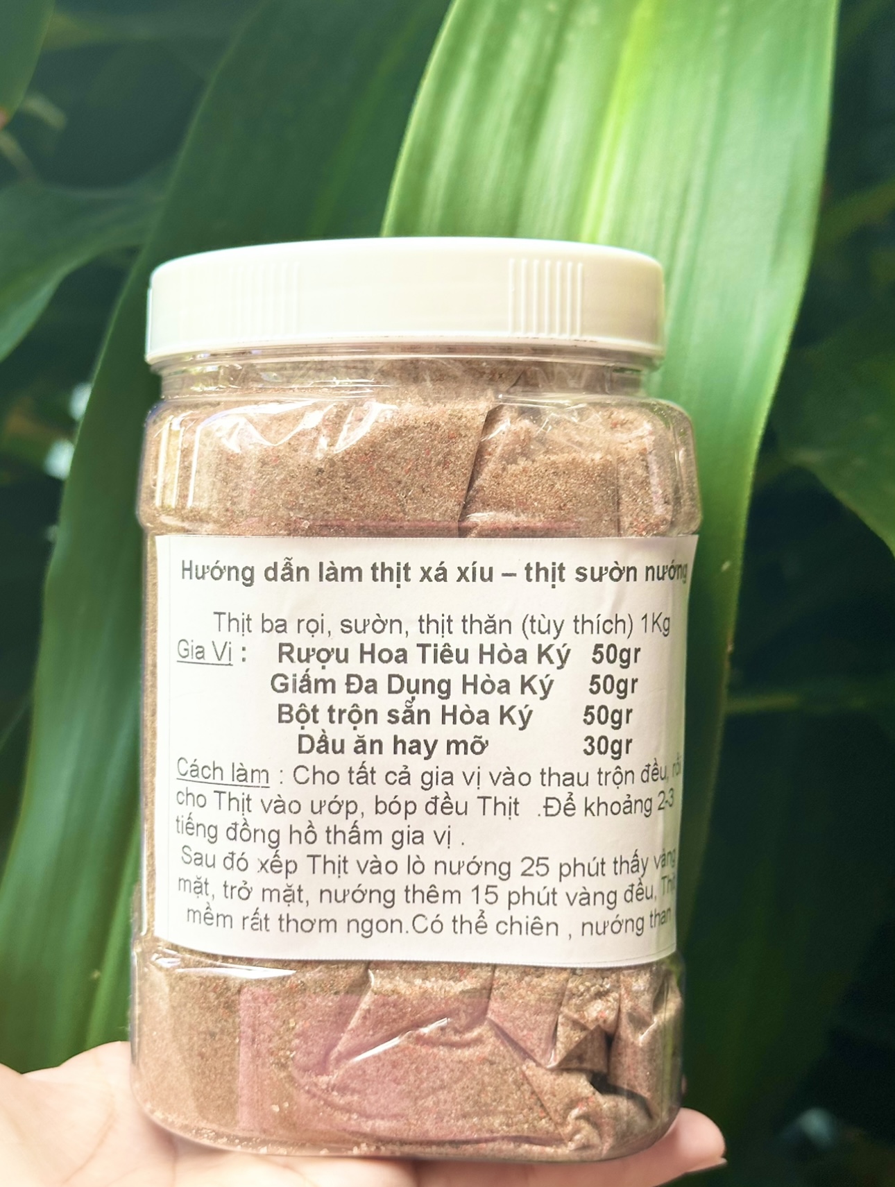 ia Vị đã trộn sẵn đầy đủ dùng ướp Thịt - Sườn quay nướng . Mùi vị rất thơm ngon . Hủ 1 kg ướp được 20kg thịt sườn . DÙNG ƯỚP ĐƯỢC CHO MÓN