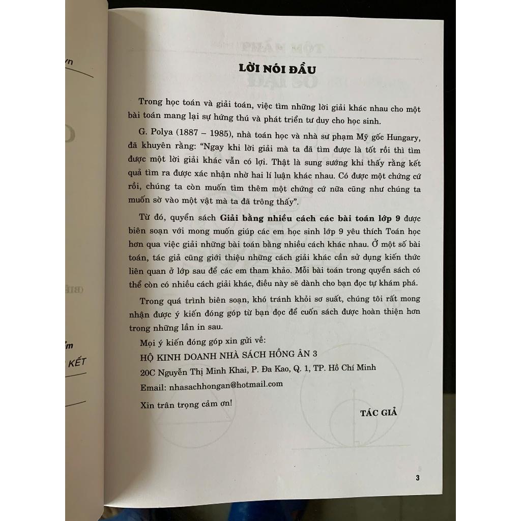 Sau khi thực hiện chương trình giáo dục phổ thông mới, với phương châm giúp học sinh vừa phát triển phẩm chất và năng lực vừa phải mở mang kiến thức vừa phải rèn luyện kĩ năng; Quý Thầy Cô và các em học sinh đã tiếp cận nội dung với phương pháp mới. Đồng hành cùng quý thầy cô và các em học sinh, tác giả tiếp tục biên soạn cuốn sách “Giải Bằng Nhiều Cách Các Bài Toán Lớp 9 ( Biên soạn theo chương trình giáo dục phổ thông mới)” với hy vọng sẽ là tài liệu tham khảo thiết thực cho quý thầy cô và các em học sinh theo hướng phát triển.