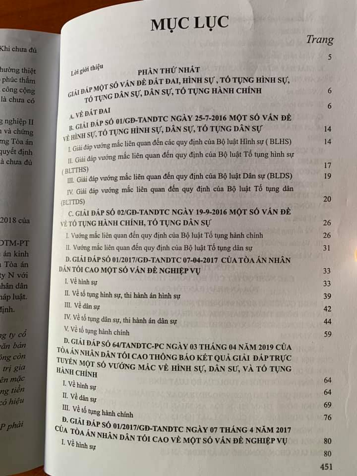 Phần thứ nhất, Giới thiệu các giải đáp một số vấn đề về đất đai, hình sự, tố tụng hình sự, tố tụng dân sự, dân sự và tố tụng hành chính năm 2018 và 02 Thông báo kết quả giải đáp trực tuyến năm 2019 của Hội đồng Thẩm Phán Tòa án nhân dân tối cáo có dẫn chiếu đầy đủ các quy định của pháp luật có liên quan