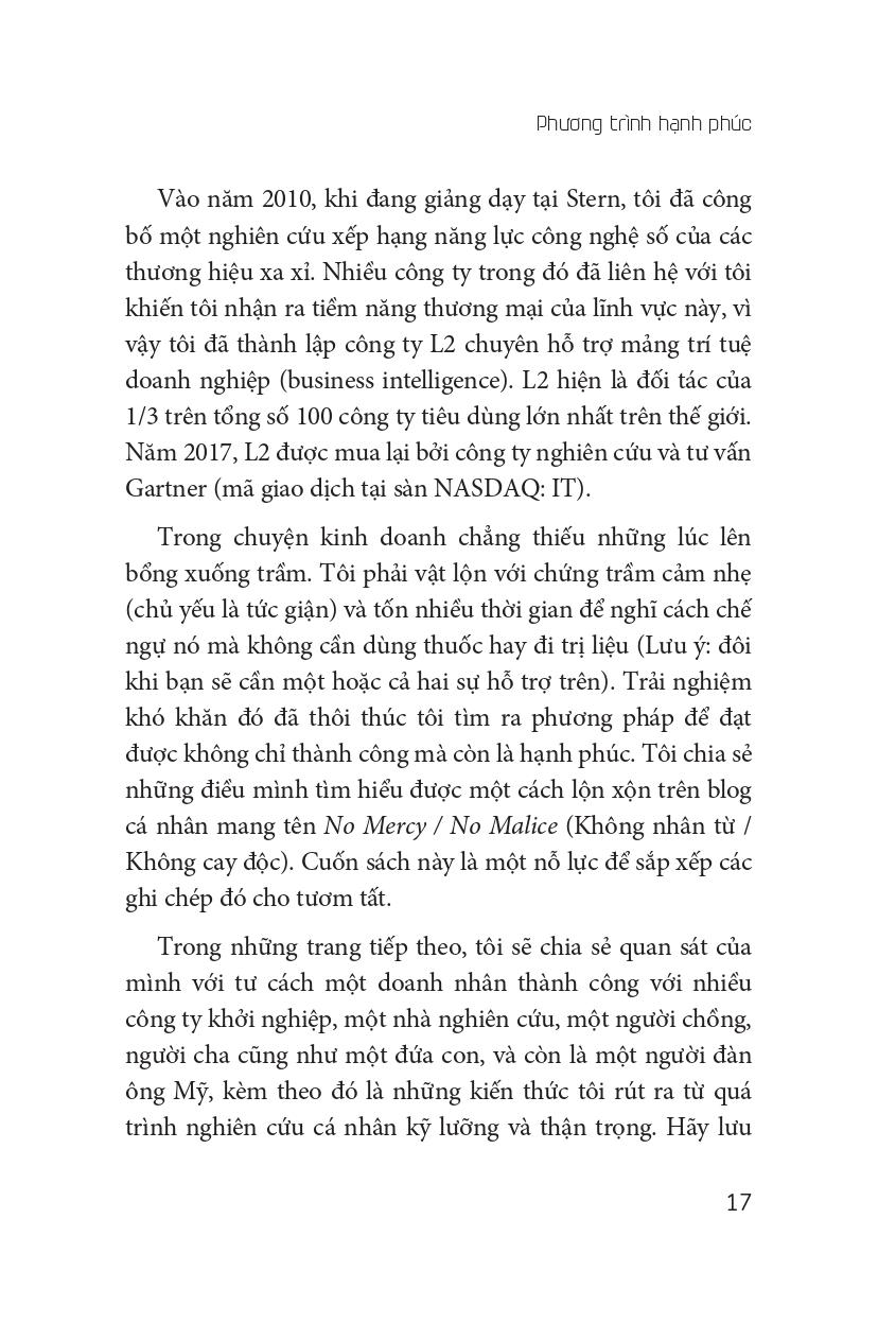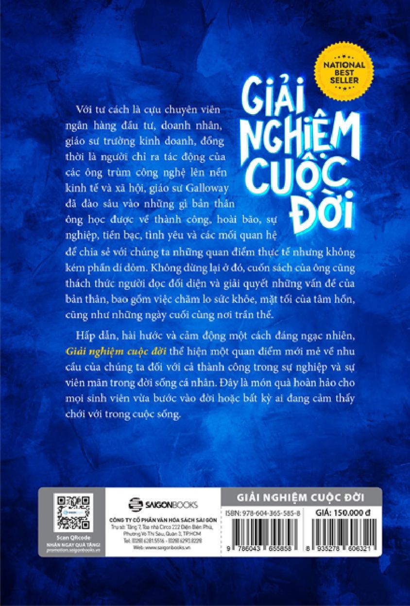 Tác giả Scott Galloway trong cuốn sách “Giải nghiệm cuộc đời” đã chia sẻ quan sát của mình với tư cách một doanh nhân thành công với nhiều công ty khởi nghiệp, một nhà nghiên cứu, một người chồng, người cha cũng như một đứa con, và còn là một người đàn ông Mỹ. Ông đã tổ chức buổi học cuối khóa kéo dài ba giờ với tên gọi “Phương trình Hạnh phúc”. Xuyên suốt buổi học, ông đã bóc tách các khái niệm thành công, tình yêu và một cuộc đời đáng sống.