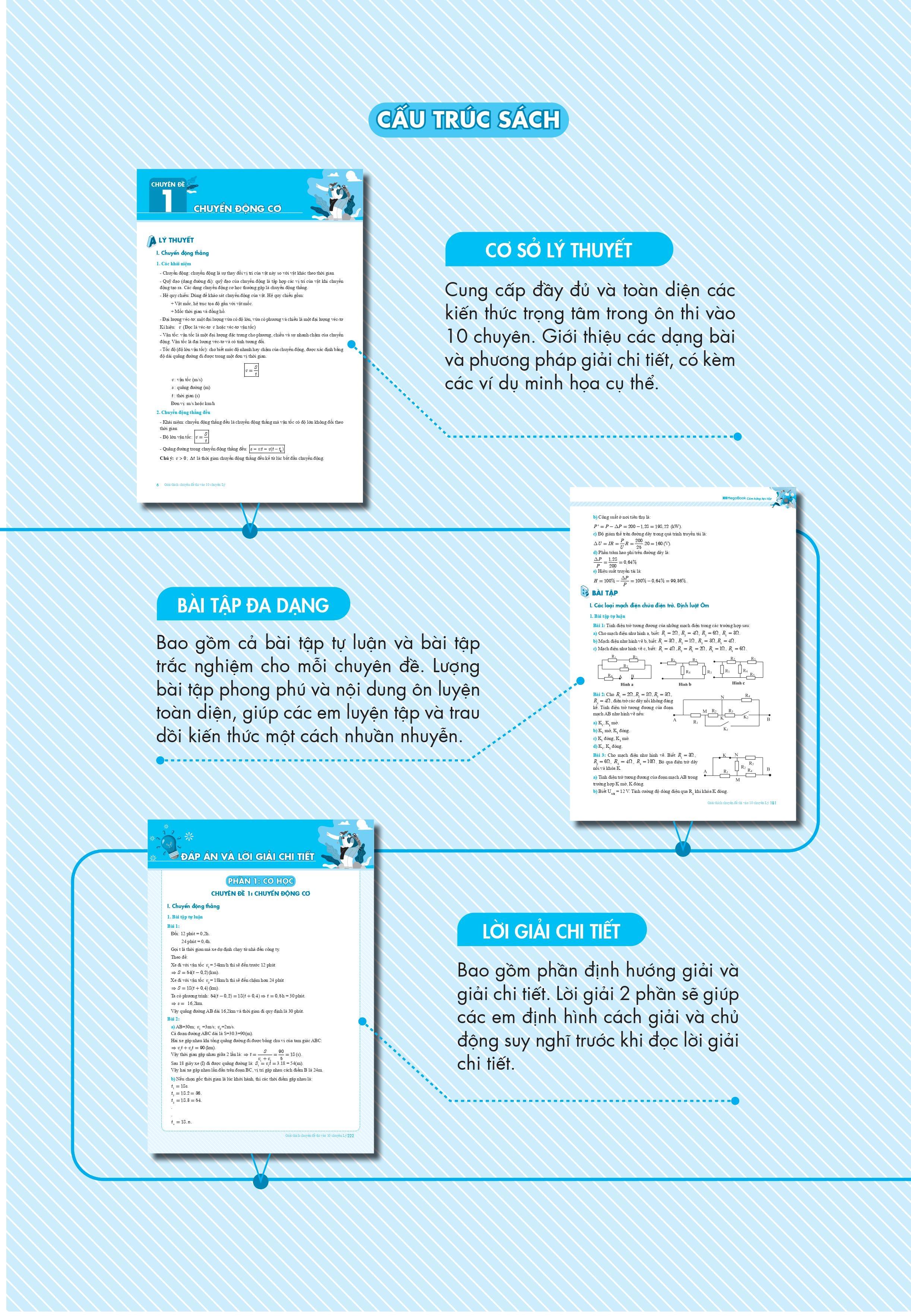 Kỳ thi vào lớp 10 luôn là kỳ thi nhiều áp lực nhất với các em học sinh lớp 9. Đối với bài thi vào lớp chuyên lại càng đòi hỏi các em phải tập trung cao độ và không ngừng ôn luyện để nâng cao kiến thức. Các em cần phải chuẩn bị một tâm lý ôn thi thật vững vàng và các tài liệu ôn thi chuyên mang tính tổng hợp, nâng cao, đầy đủ kiến thức để tự rèn luyện. Hiểu được điều các em cần, Megabook đã cho ra đời Bộ sách “Giải thích chuyên đề ôn thi vào 10 chuyên” nhằm giúp các em có 1 tài liệu ôn thi chuyên đầy đủ và chất lượng. Nằm trong bộ sách là cuốn Giải thích chuyên đề thi vào 10 chuyên Lý.