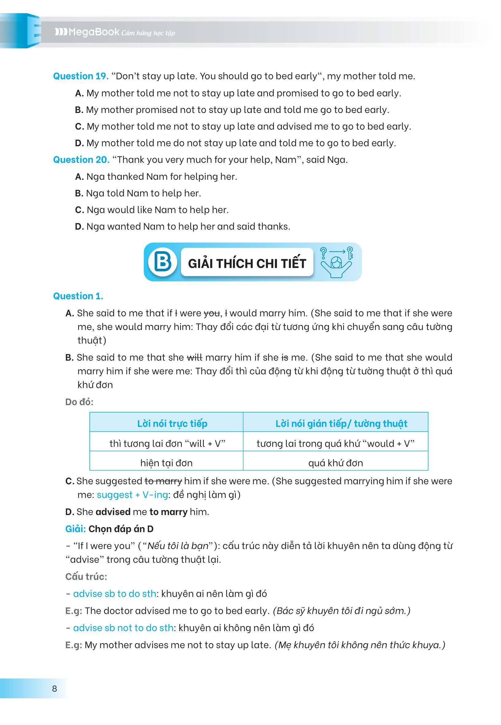 Cuốn sách cung cấp 600 câu hỏi trắc nghiệm với lời giải chi tiết, 300 câu hỏi luyện tập tổng hợp và 400 câu hỏi tự luyện. Điều này giúp học sinh có nhiều cơ hội thực hành và kiểm tra kiến thức, đảm bảo họ hiểu rõ ngữ pháp và có thể tự kiểm tra năng lực của m.ình.