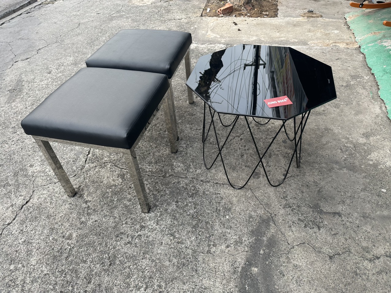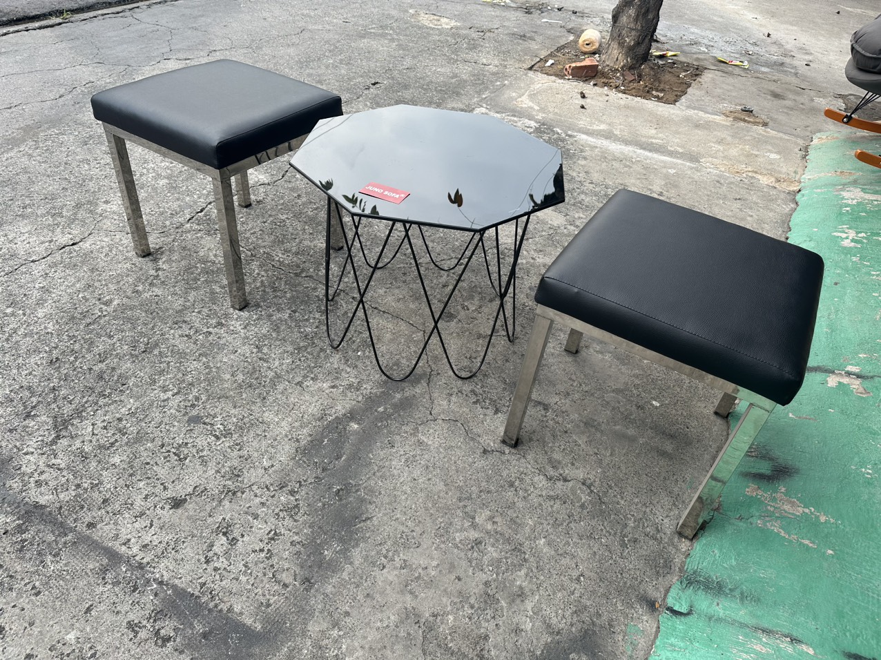 ✨(GIẢM SÂU) Bộ ghế ngồi chờ chân inox, nệm ngồi bọc da 45 x 45 x 45 cm Juno Sofa tặng kèm bàn trà kính Phi 60 cm x cao 45 cm
