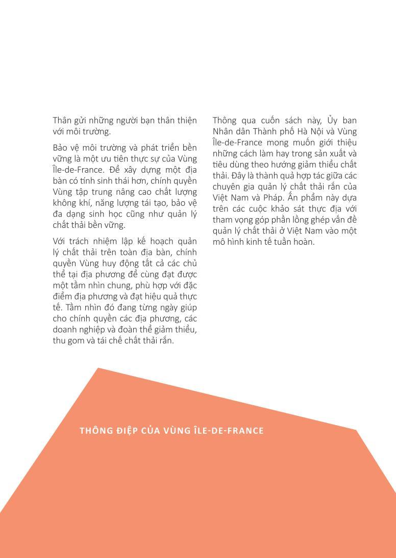 Nền tảng của nền kinh tế vòng tròn, giảm thiểu vẫn là một chủ đề hiếm khi được thảo luận. Mục đích của cuốn sách này là khắc phục sự thiếu hụt này và nêu bật các thực hành sản xuất và tiêu dùng tốt để giúp giảm thiểu lãng phí. Là kết quả của sự hợp tác giữa các chuyên gia quản lý chất thải của Việt Nam và Pháp, ấn phẩm này, dựa trên các cuộc khảo sát thực địa, nhằm giúp tích hợp quản lý chất thải ở Việt Nam vào một mô hình kinh tế tuần hoàn.