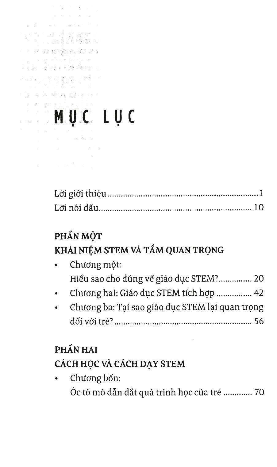 Cuốn sách nhỏ này được viết ra nhằm chia sẻ thông tin dựa trên một số nghiên cứu mới nhất trong lĩnh vực giáo dục STEM, được viết dưới dạng dễ hiểu, đồng thời kết hợp với những kinh nghiệm thực tế từ các cuộc hội thảo, lớp tập huấn mà tác giả có dịp được tham dự và chủ trì trong cả hai môi trường Việt Nam và Mỹ.