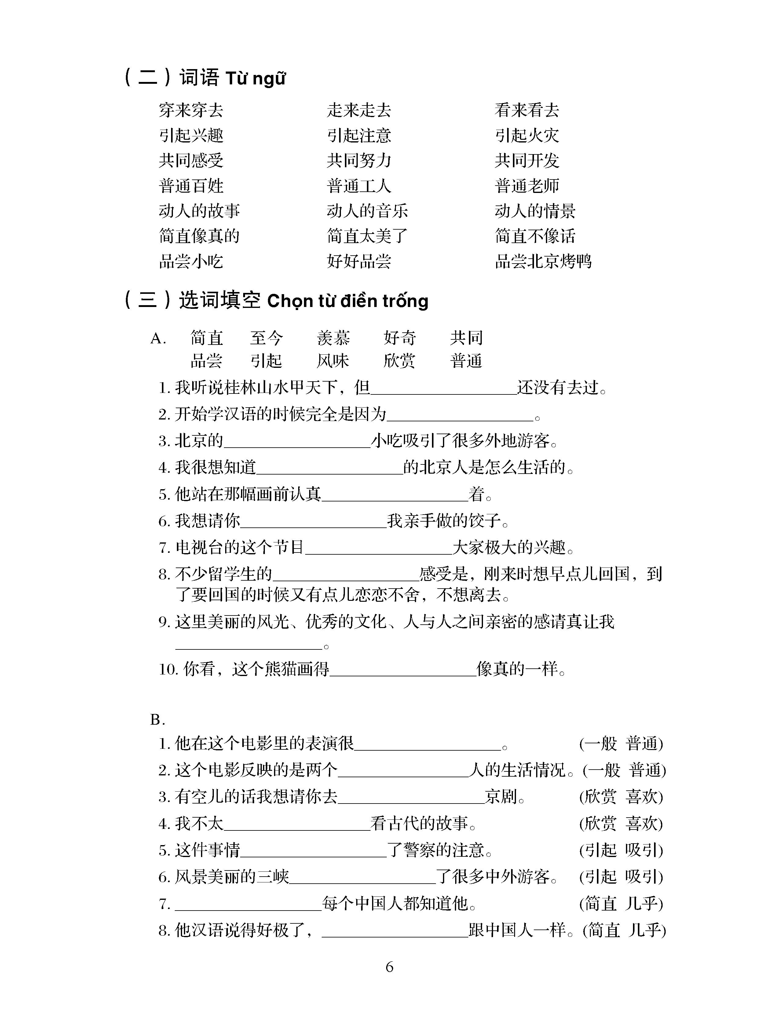 Giáo Trình Hán Ngữ 6 - Tập 3 - Quyển Hạ (Phiên Bản 3) Nếu coi Giáo trình Hán ngữ quyển 1, và Giáo trình Hán ngữ Quyển 2 là Giáo trình tiếng Trung sơ cấp; Thì Giáo trình Hán ngữ quyển 3, 4 là Giáo trình tiếng Trung trung cấp thì tới Giáo trình Hán ngữ quyển 5, 6 là giáo trình tiếng Trung cao cấp. Đây là quyển cuối trong bộ sách Giáo trình Hán Ngữ. Học hết quyển này thì bạn có thể thoải mái nói chuyện tiếng Trung, viết các đoạn văn khá tốt. Bạn cũng sẽ dễ dàng thi HSK 5 hơn. Tầm này thì đi xin việc cũng chả còn đáng lo nữa. Nếu bạn chăm chỉ thì còn có thể phiên dịch tốt ý chứ. Giáo trình Hán ngữ 6 – Tập 3 – Quyển hạ – Phiên bản 3 mới nhất là cuốn sách được biên soạn kỹ lưỡng từ bộ giáo trình cũ. Bên cạnh những kiến thức cũ thì hiện nay cuốn giáo trình đã được biên soạn lại bổ sung rất nhiều kiến thức. Với lượng từ mới khổng lồ cuốn sách sẽ hứa hẹn mang đến cho các bạn một trải nghiệm vô cùng thú vị với tiếng Trung