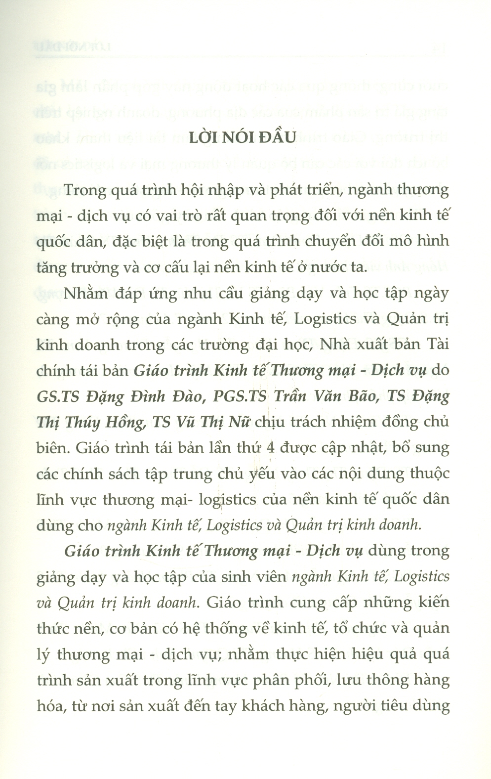 Nhằm đáp ứng nhu cầu giảng dạy và học tập ngày càng mở rộng của ngành Kinh tế, Logistics và Quản trị kinh doanh trong các trường đại học, Nhà xuất bản Tài chính tái