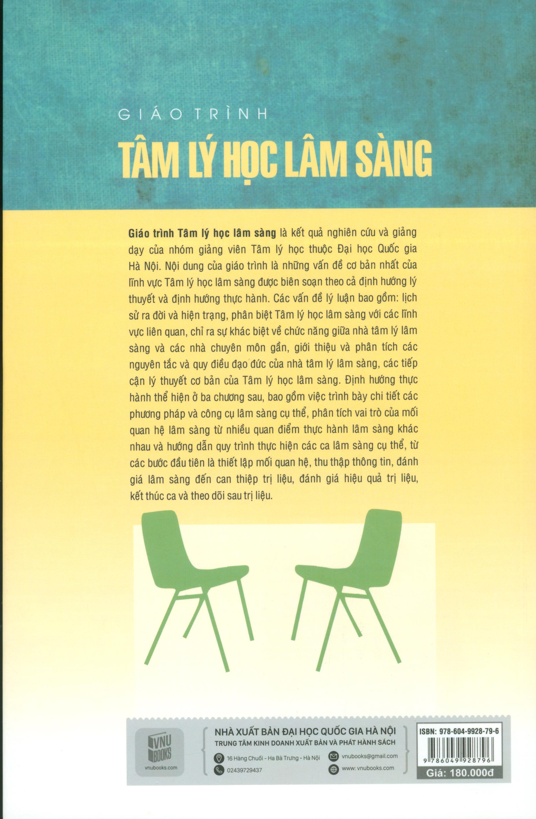 Nhóm tác giả ấmp ủ về một cuốn giáo trình Tâm lý học lâm sàng dành cho sinh viên tâm lý học với hy vọng hệ thống hoá một phần lý thuyết và trình bày một số kiến thức, kỹ năng thực hành lâm sàng cơ bản.Nhiều nội dung tronggiáo trình cũng là kết quả nghiên cứu nhiều năm và đặc biệt, được đúc rút từ kinh ngjiệm thực hành lâm sàng của chính các tác giả.