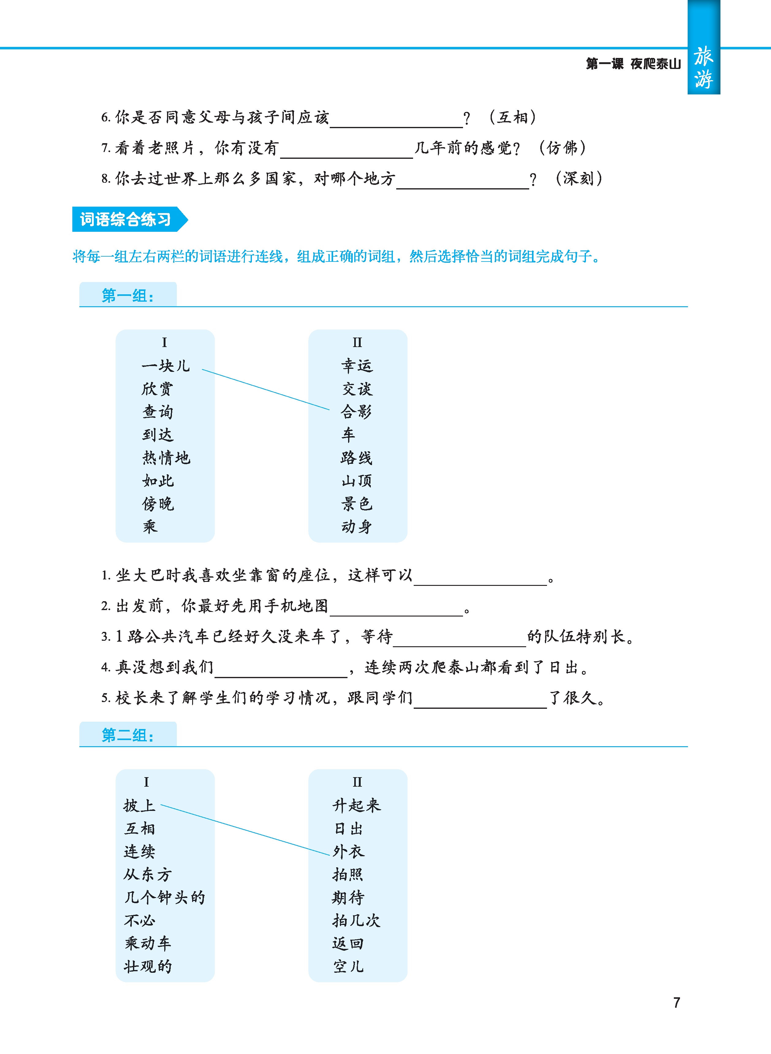 Bộ giáo trình này bao gồm 6 quyển Sách Bài học tổng hợp, 6 quyển Sách Bài tập tổng hợp. Bài học và Bài tập phối hợp với nhau, mỗi quyển 16 bài. Giáo trình tuân thủ nghiêm ngặt yêu cầu của “Đề cương thi HSK” và đề cương “Kỳ thi tốt nghiệp giáo dục dự bị đại học dành cho lưu học sinh chính quy du học tại Trung Quốc do chính phủ Trung Quốc cấp học bổng”, sắp xếp cụ thể như sau: