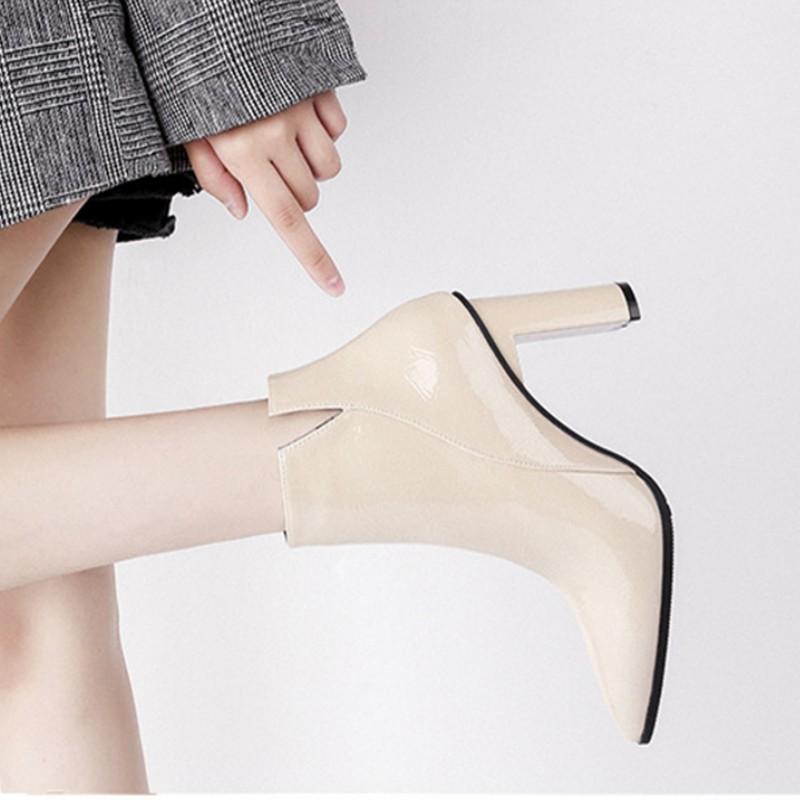 Bốt cổ ngắn màu kem gót 7.5cm bốt nữ