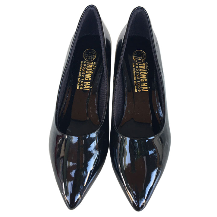 ✨Giày cao gót bít mũi Trường Hải đế vuông 3cm da bóng đen GCG120