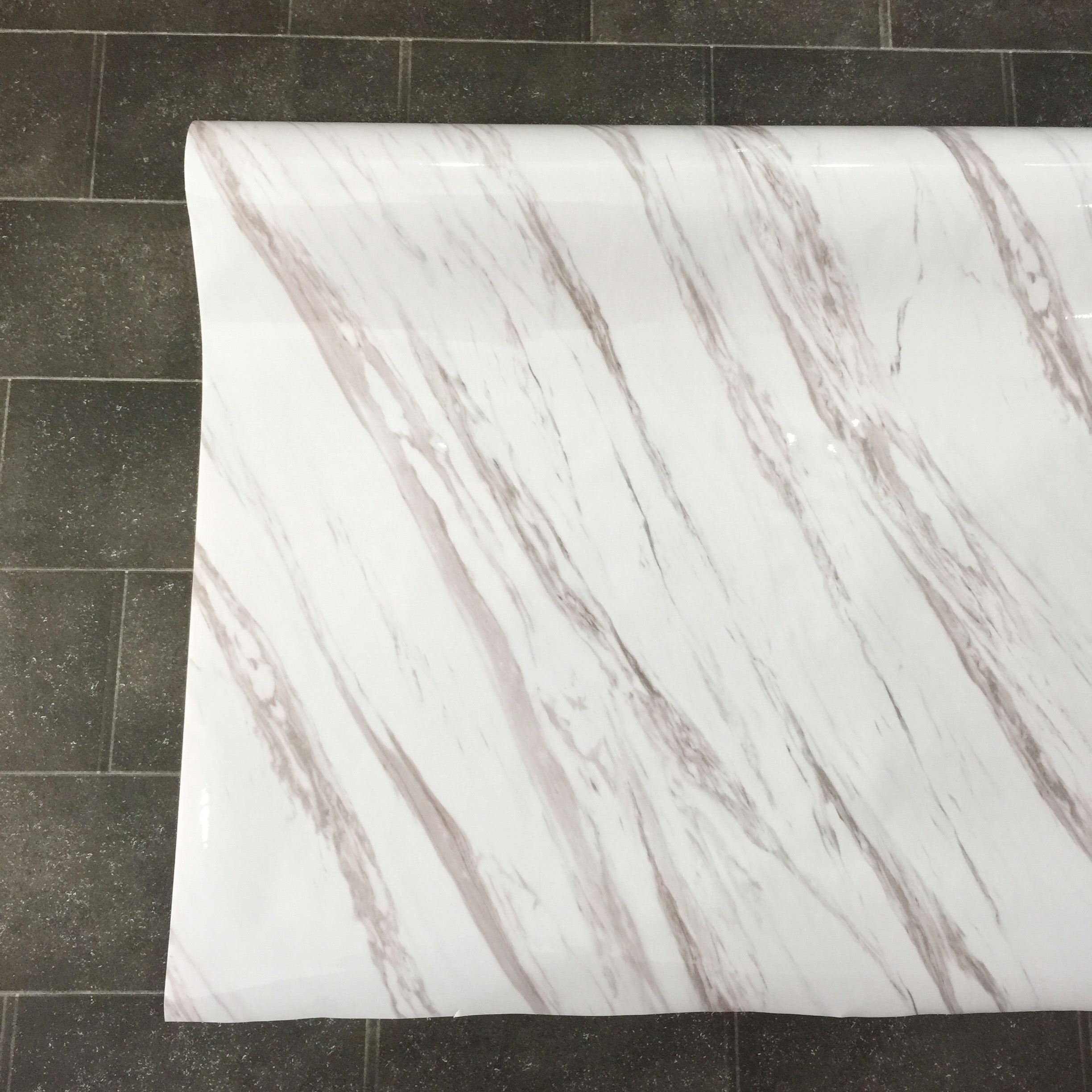 Mẫu giấy dán tường giả đá hoa cương màu trắng này có sẵn keo rồi, khách chỉ cần lột ra dán thôi.
