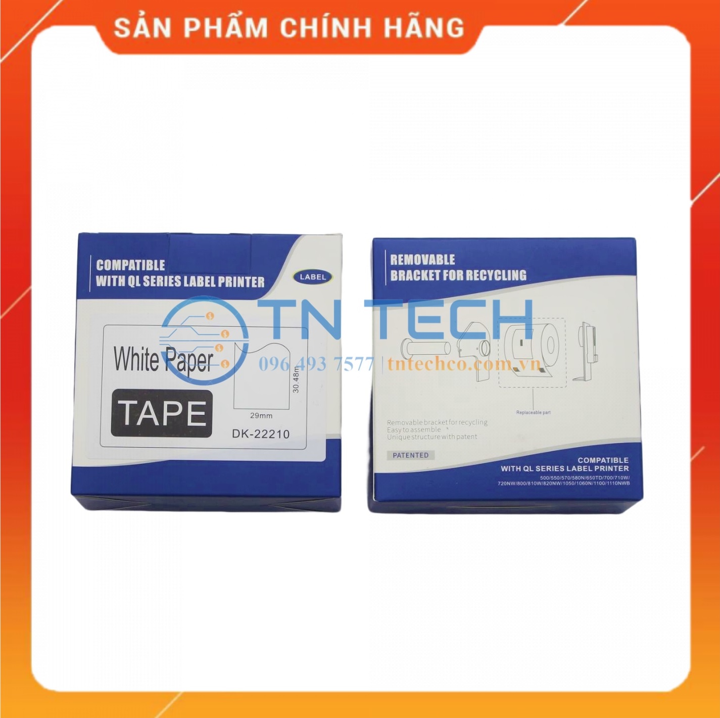 ✨Giấy in Decal Brother DK-22210 - 29mm x 30.48m - Chữ đen nền trắng - Dùng cho máy in BROTHER - QL [Hàng nhập khẩu]